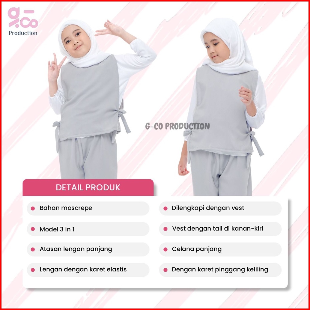 One Set Chika Grey Atasan Rompi Baju Anak Perempuan Kekinian Usia 1-12 Tahun By G-co Production