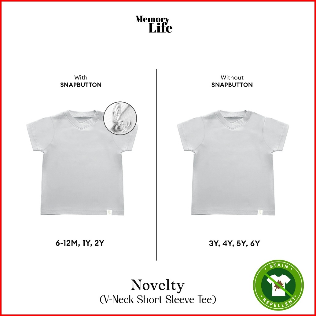 Memorylife Tee Series - Novelty V-neck Short Sleeve Tee Kaos V-neck Lengan Pendek Anak Anti Noda Premium Umur 6 B