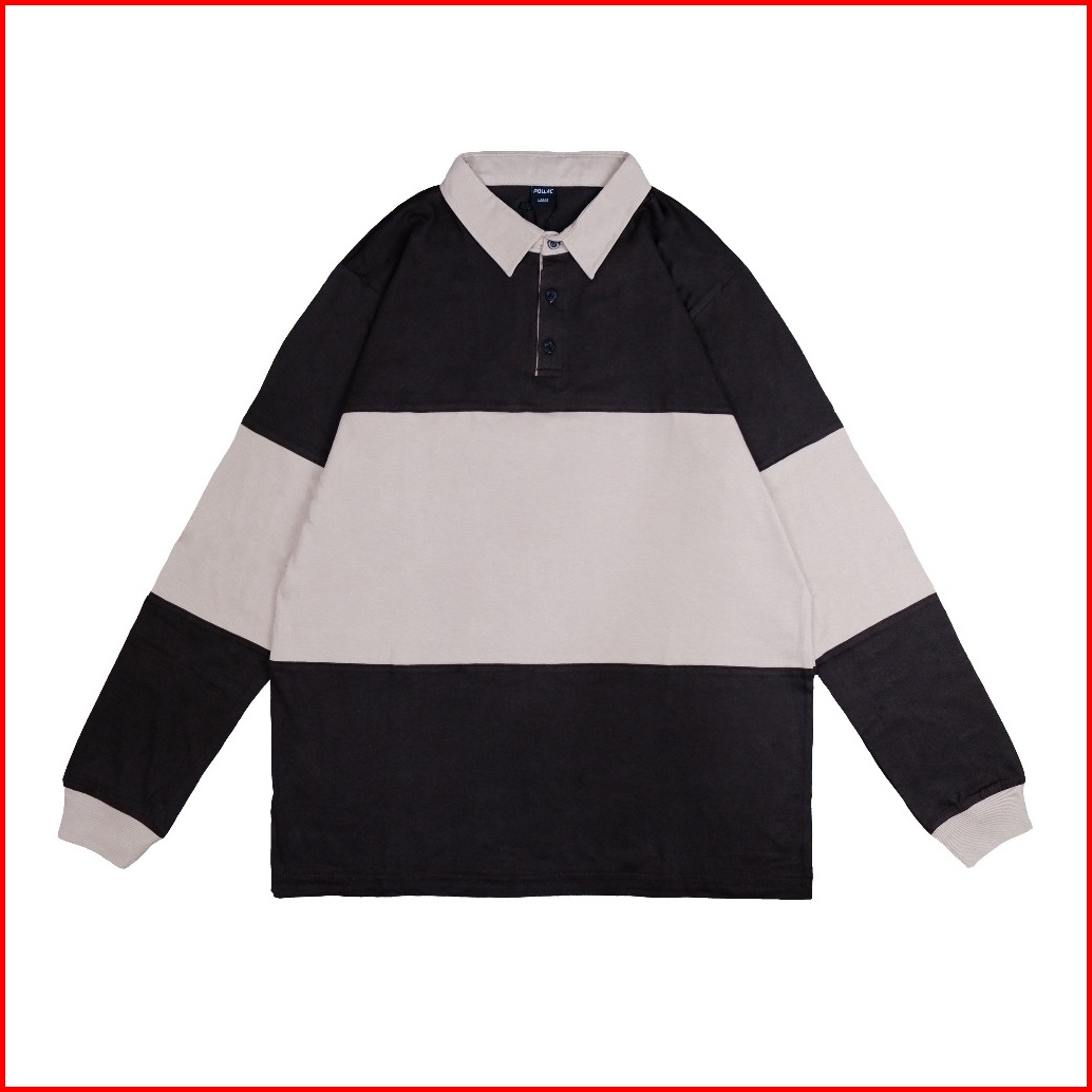 Pollac Rugby Tshirt Kaos Kerah Lengan Panjang Kombinasi Warna Brwn
