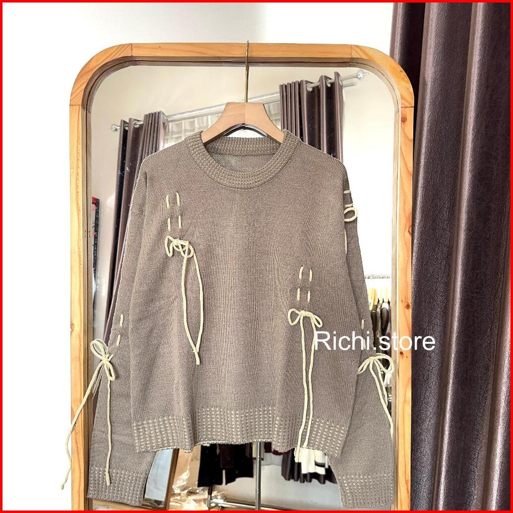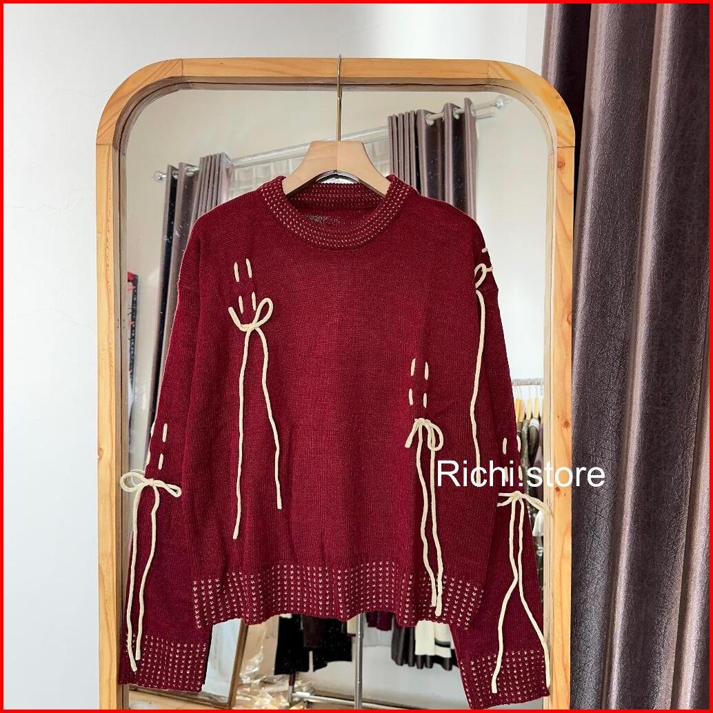 Fujia Blouse Knitwear Tali Pita Atasan Rajut Wanita Lengan Panjang