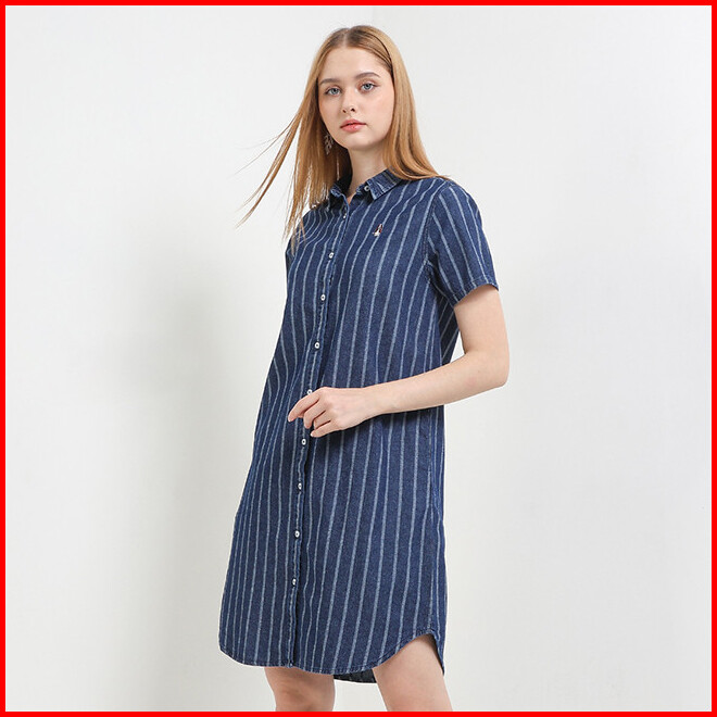 Hush Puppies Dress Wanita Strepo Dark Blue
