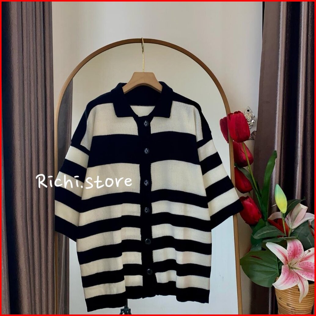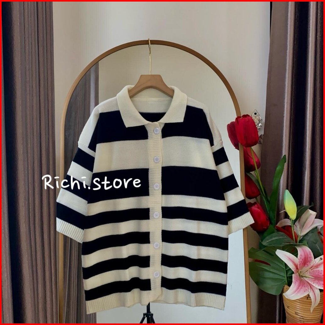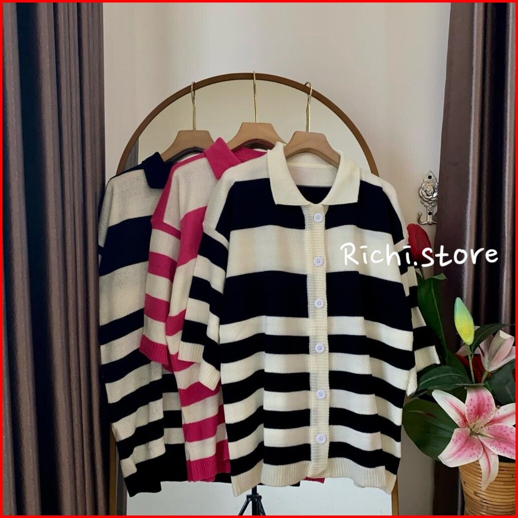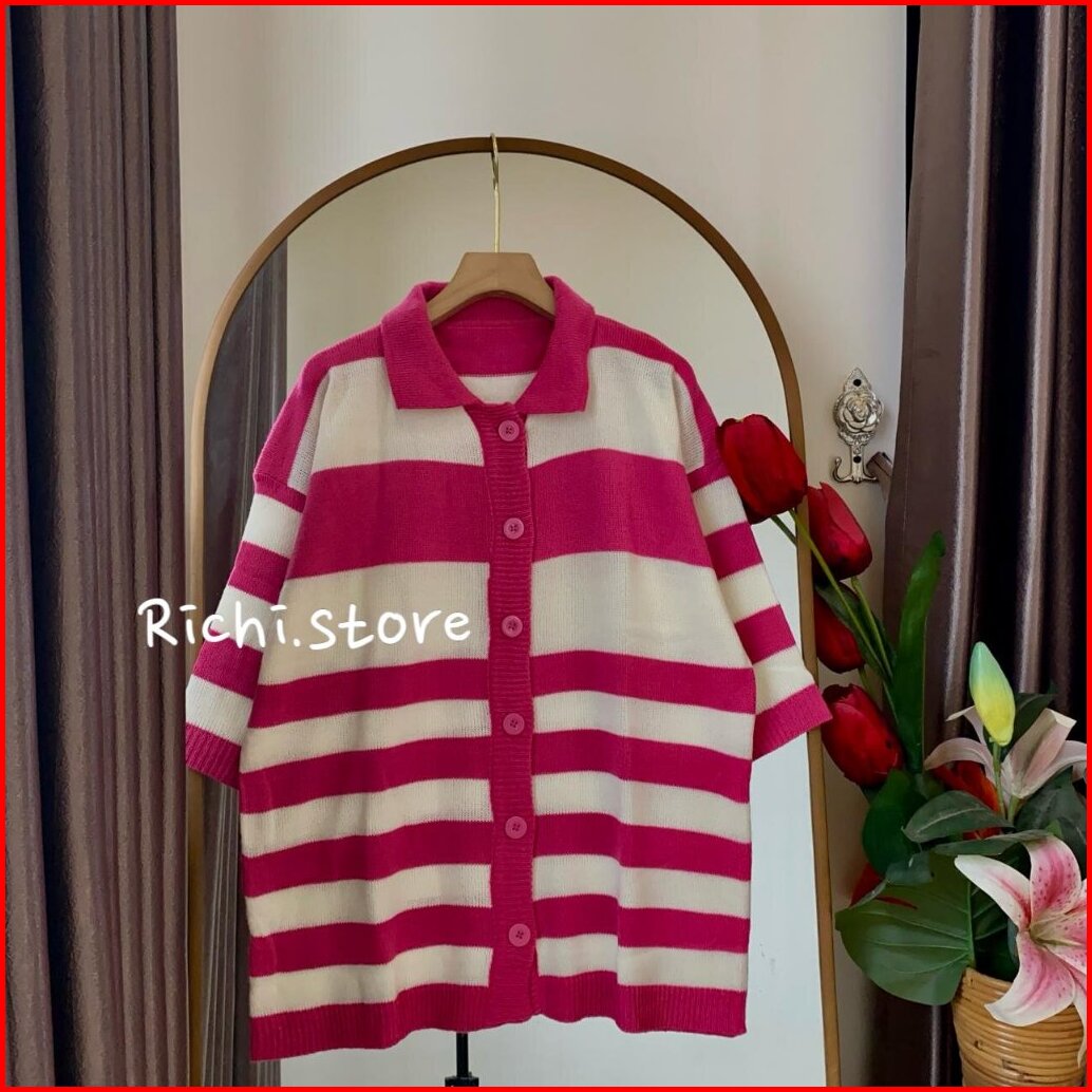 Devierra Cardigan Rajut Atasan Wanita Motif Setrip