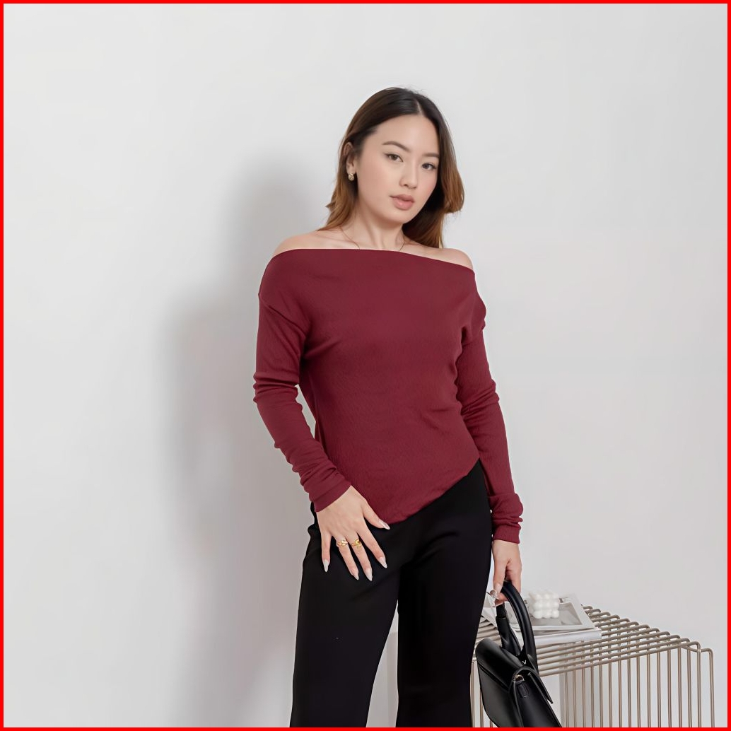 Atasan Wanita Theresa Sabrina Rib Knit Baju Atasan Wanita Rib Knit Premium Atasan Long Sleeve