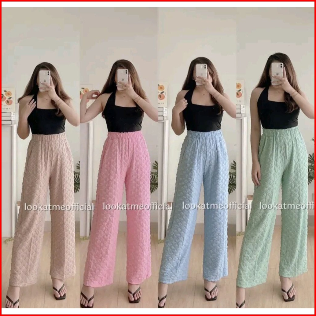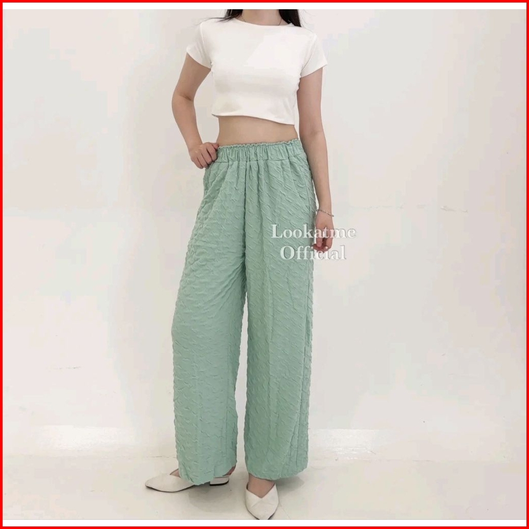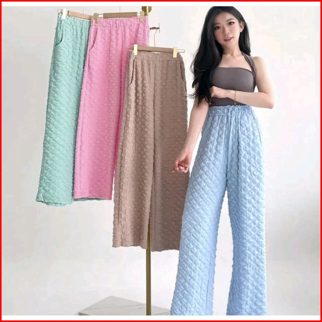 Celana Kulot Wanita Bubbel Knit Premium Bawahan Wanita Terbaru Celana Wanita Viral Kekinian