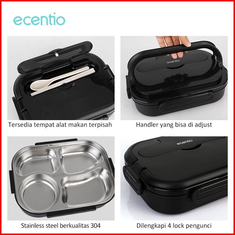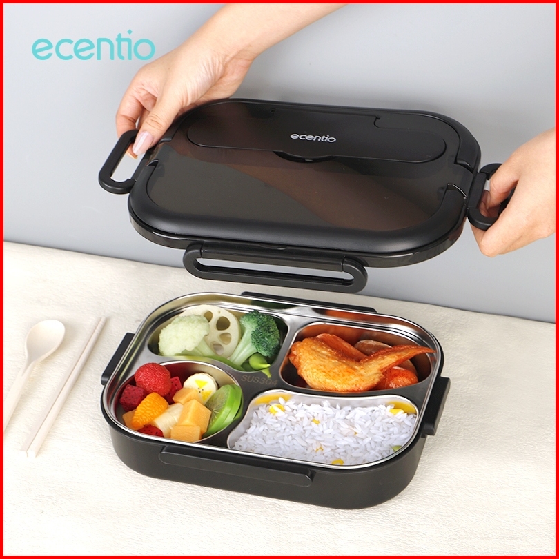 Makan Di Luar Ruanganecentio Lunch Box Stainless 4 Grid 1000ml Portabel Kotak Bekal Anti Tumpah Dengan Sup 250ml Tahan P
