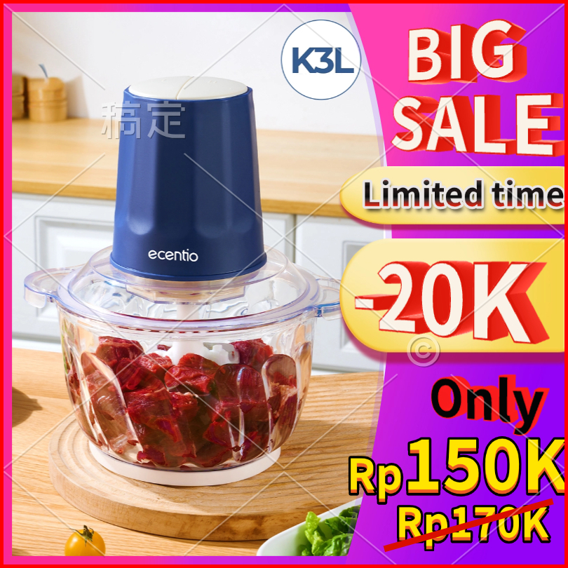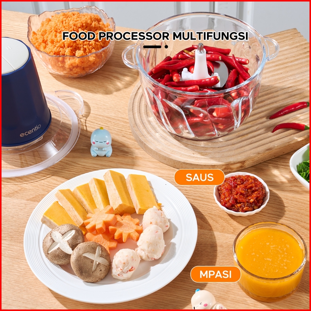-20ecentio Chopper 2in1 Multifungsi Food Processor 6 Pisau 2l Kapasitas Besar 250w Dilengkapi Dengan 2 Kecepatan Daya Ku