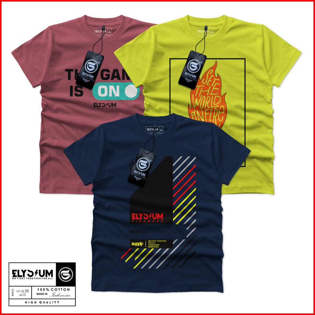 Elysium Kidswear Paket 3 Baju Anak Kaos Anak Distro Baju Anak Distro Usia 1-12 Tahun