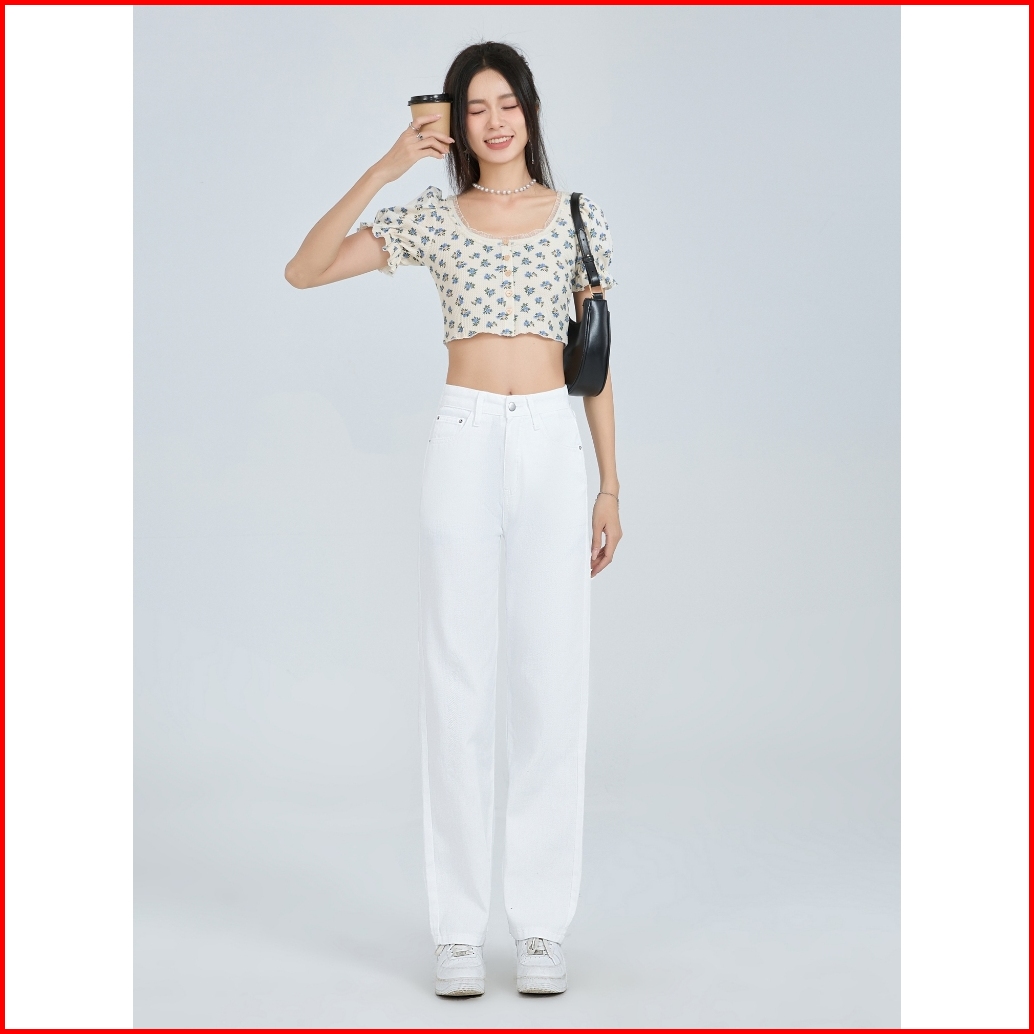 Fufu Celana Straight Jeans Wanita Celana Highwaist Loose Cutbray Jeans Bahan Denim Long Pants Celana Panjang Korean Styl