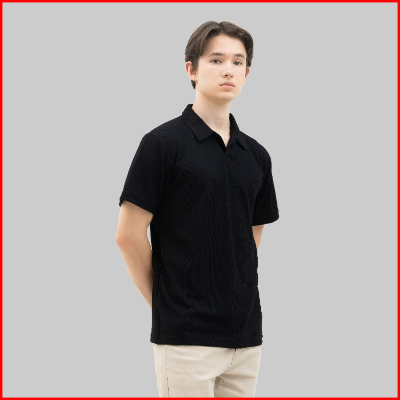 Kaos Polo Shirt Pria Waffle Knit Lengan Pendek