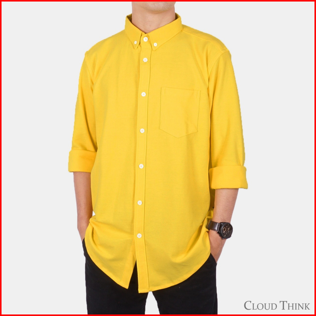 Kemeja Pria Lengan Panjang Yellow Cloudthink Cotton Pique