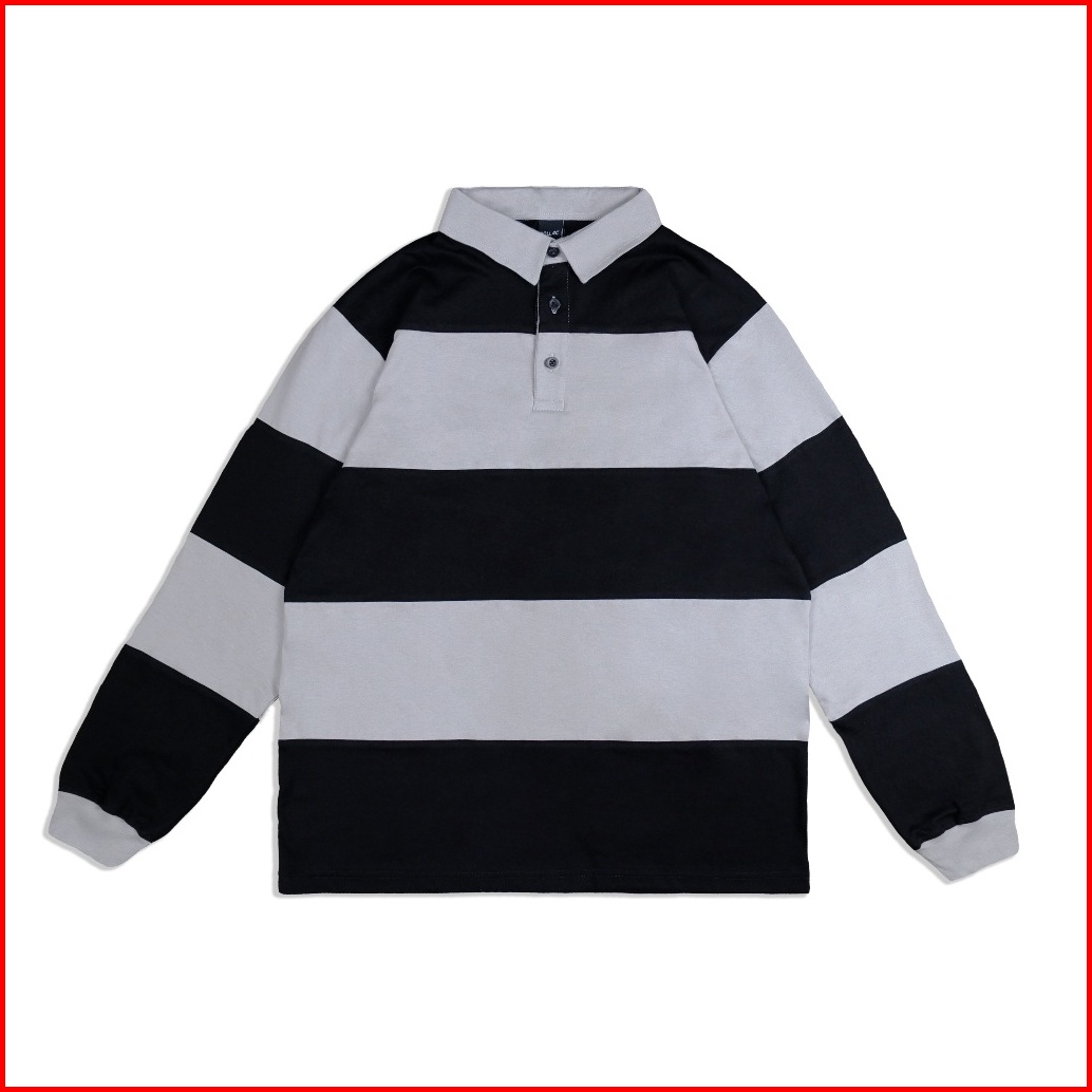 Pollac Rugby Tshirt Kaos Kerah Lengan Panjang Kombinasi Warna Blacklight