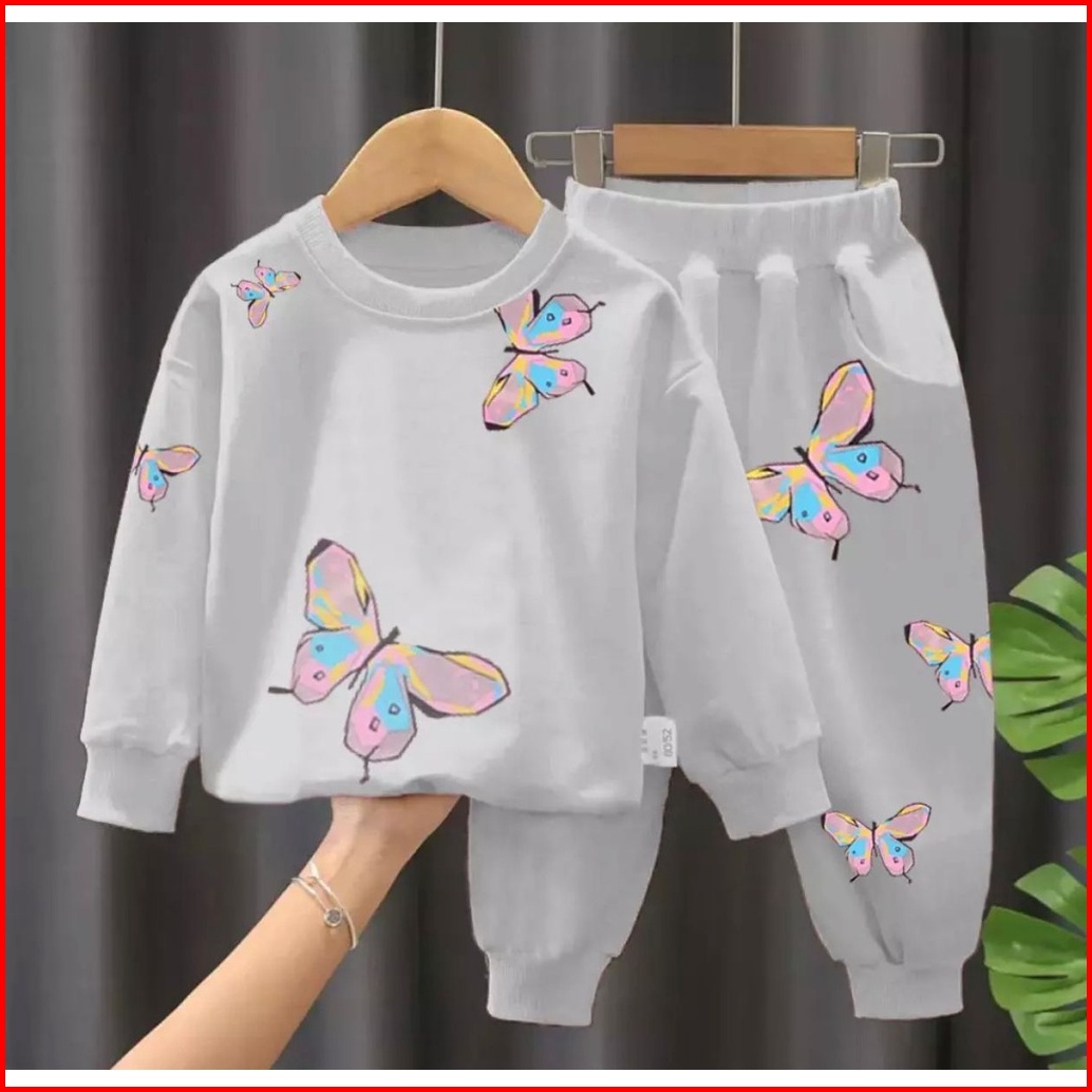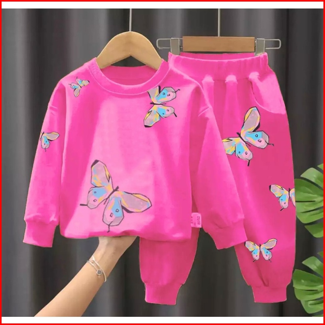 Setelan Baju Anak Perempuan Setelan Sweater Setelan Baju Dan Celana Anak 3bulan - 5tahun Kupu Kupu Pink