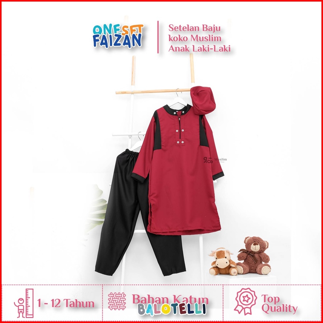 Baju Koko Anak Laki-laki Lengan Panjang Usia 1-12 Tahun Gamis Anak Laki Laki One Set Faizan