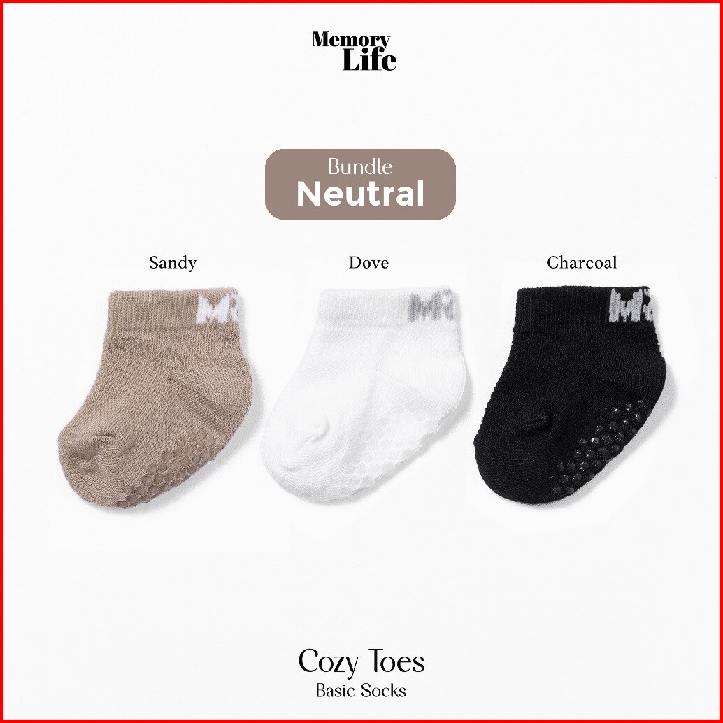 Memorylife - Cozy Toes Bundle Isi 3 Pasang Kaos Kaki Bayi Anak Low Toe Newborn Socks Lucu - Kaos Kaki Bayi