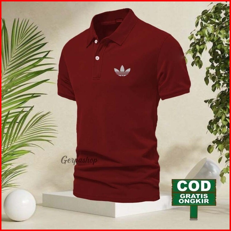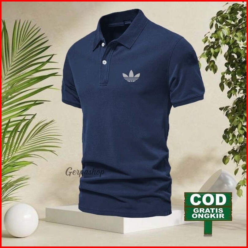Baru .... Kaos Polo Distro Lengan Pendek Polo Kerah Addi-as Text Silver Kaos Kerah Dewasa Shirt Kaos Wangki Pria Polo Ka
