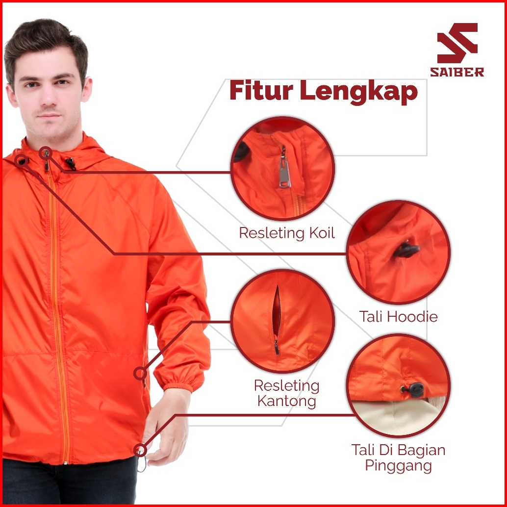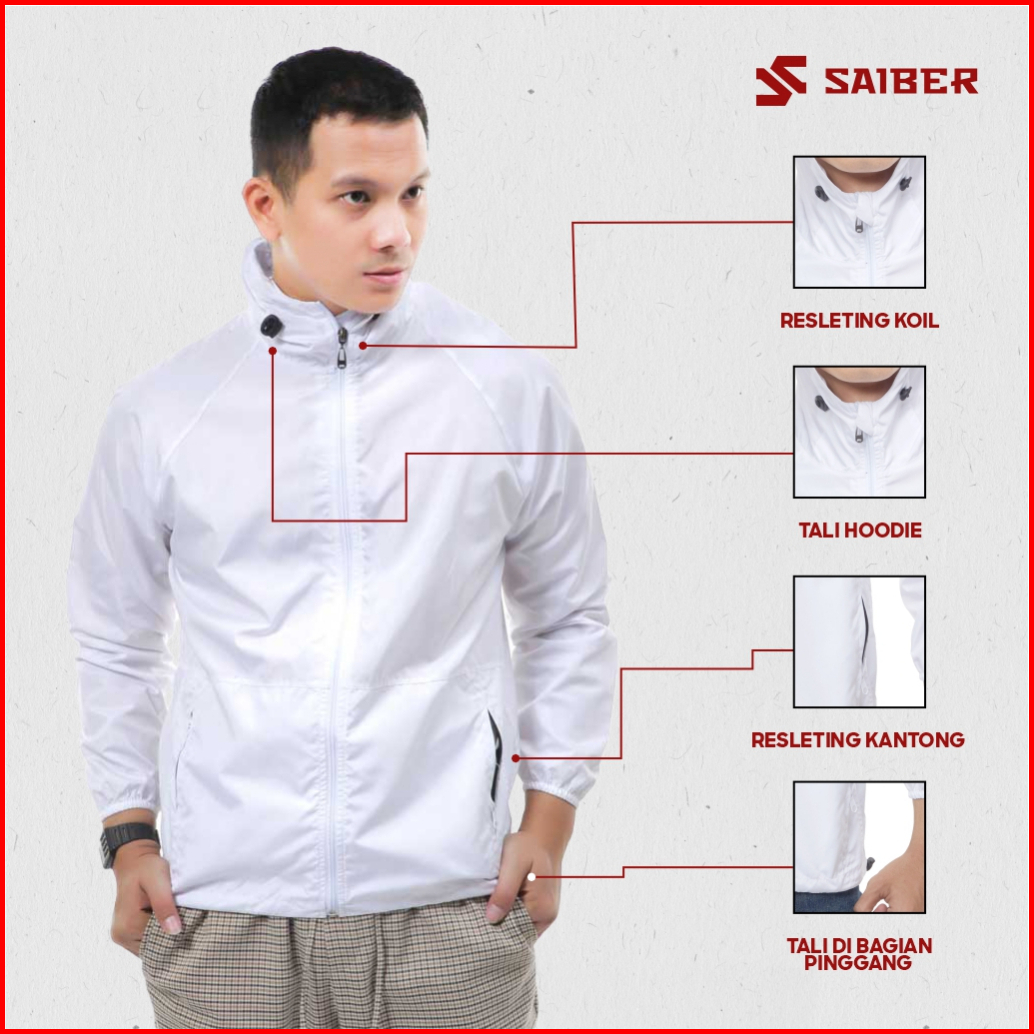 Saiber - Jaket Running Basic Windbreaker Uv Protection Quick Dry Foldable - Putih