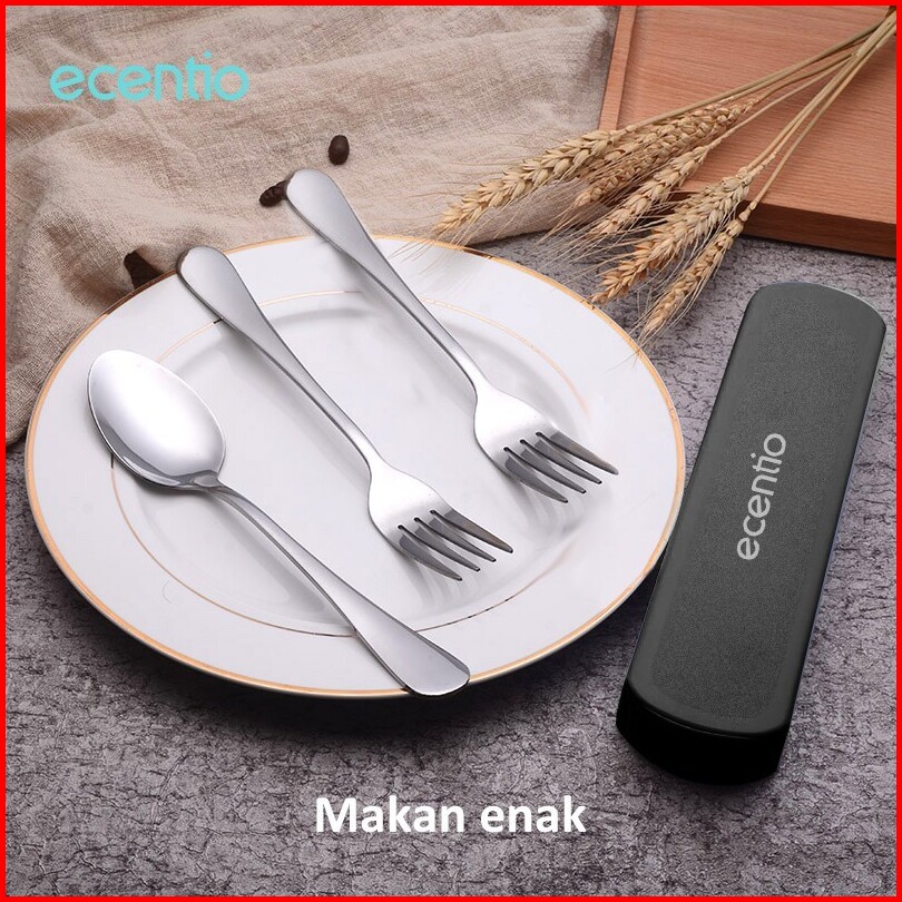 Ecentio Peralatan Makan 401 Stainless Steel Sendok Garpu Set Pisau Sumpit Alat Makan Spoon Fork Sendok Hitam