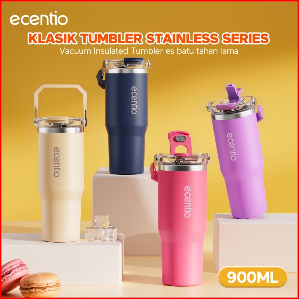 Ecentio Tumbler 900ml Tumbler Tahan Dingin 24 Jam Mug Kopi Tahan Panas Dengan Sedotan Stainless Steel 304 Vacuum Insulat