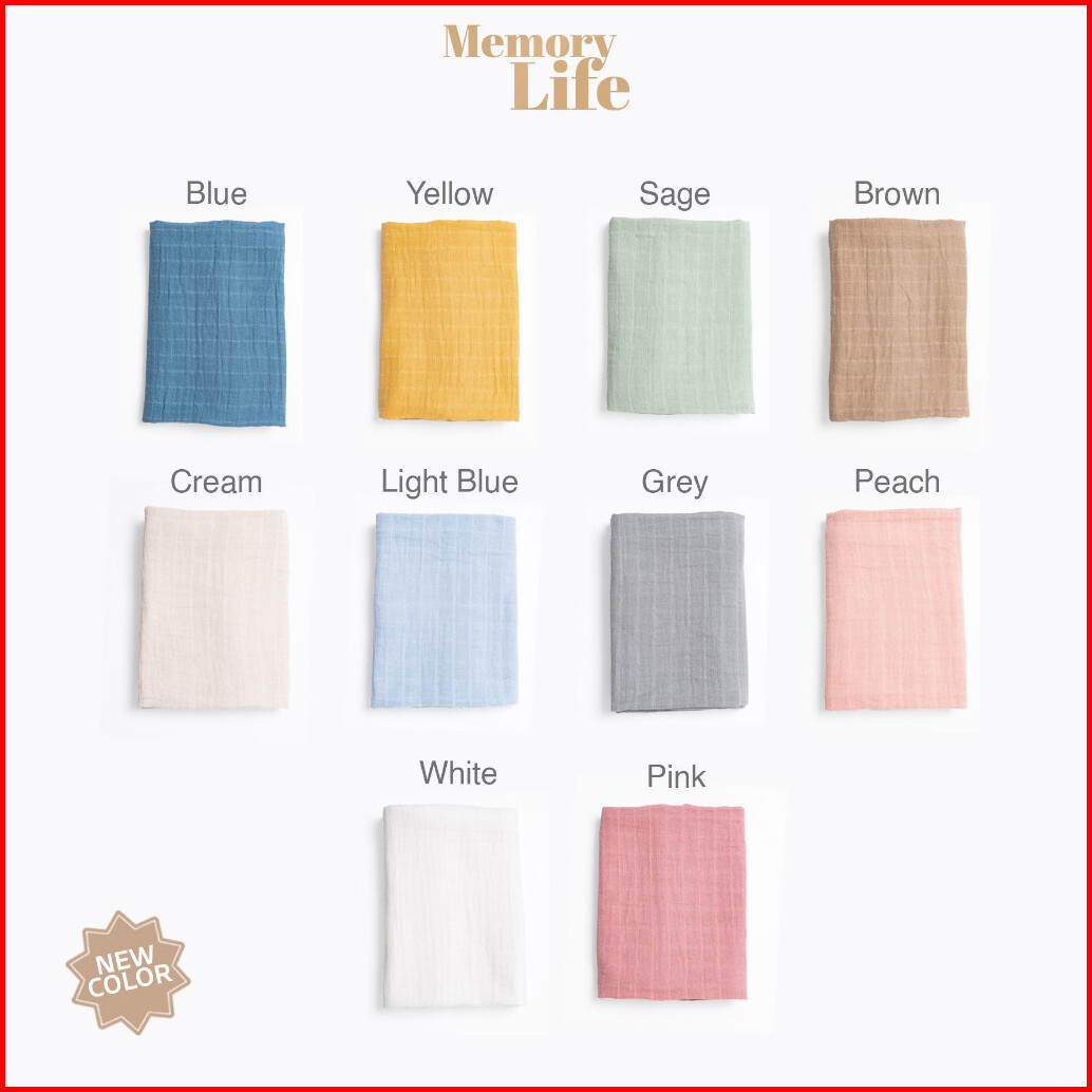 Memorylife - Premium Plain Muslin Baby Blanket Swaddle Kain Bedong Muslin Polos Selimut Bayi Memorylife Essentials