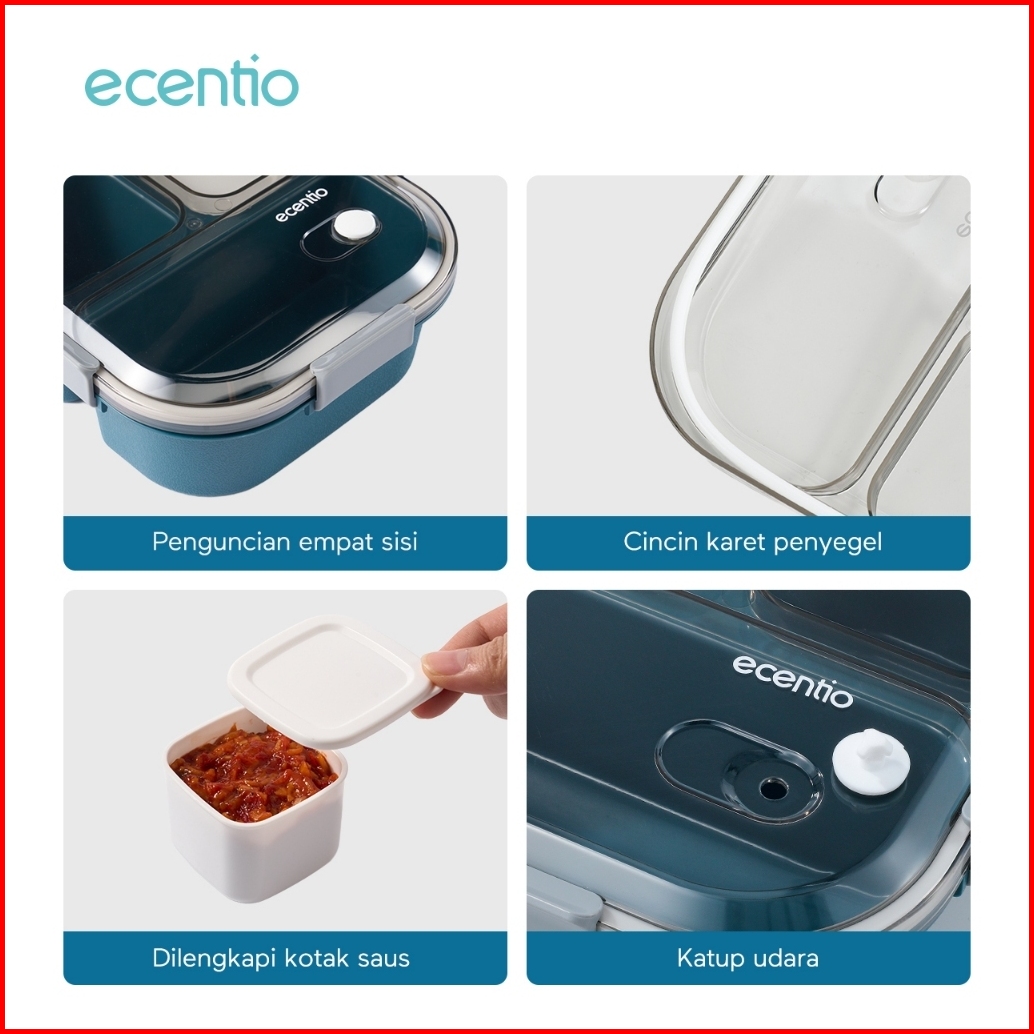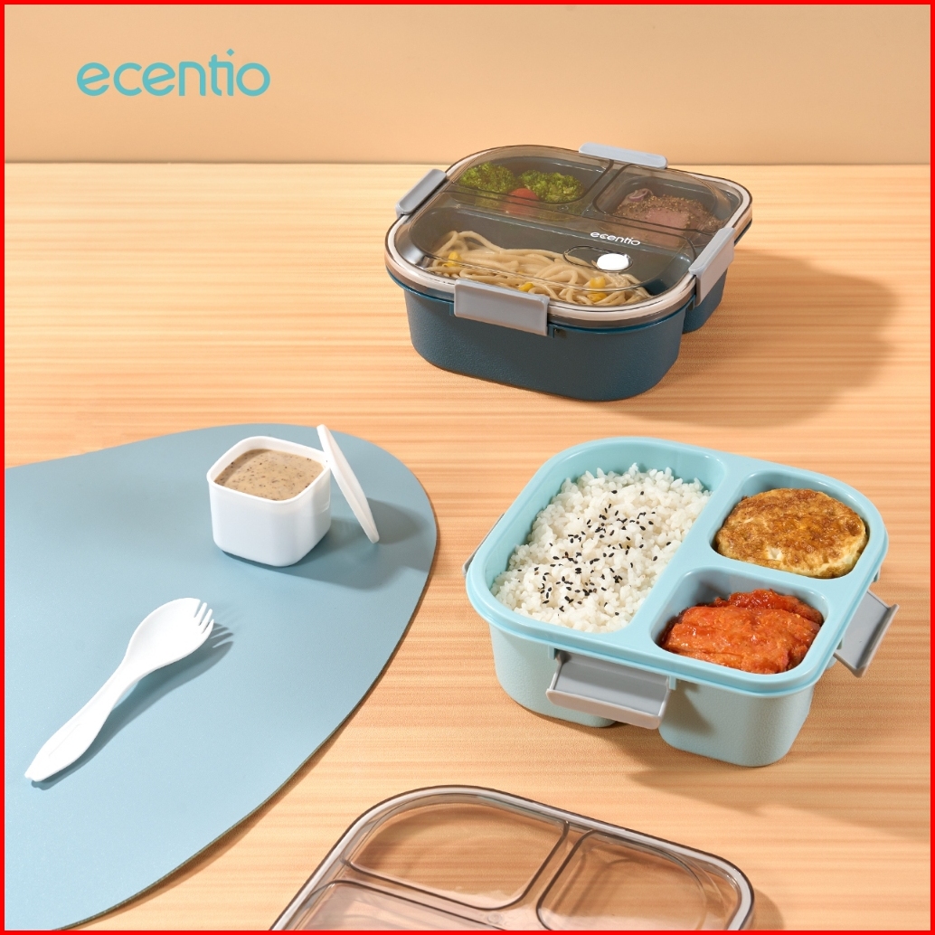 Ecentio Kotak Makan 3 Grid 1100ml 100ml Lunch Box Tempat Sendok Wadah Bekal Anti Tumpah Sup Garpu Anak Fit