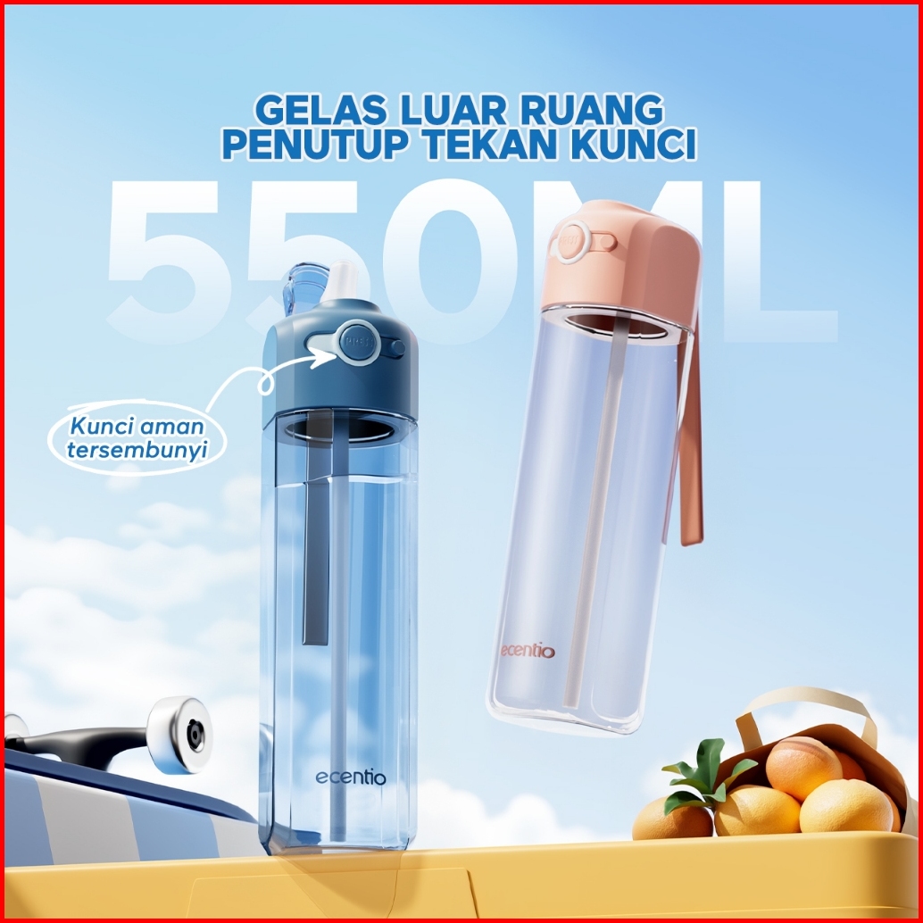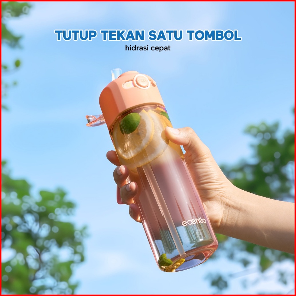 Ecentio Botol Minum 550ml With Hidden Safety Lock Tempat Minum Anti Tumpah Portable Food Grade Plastik Botol Minum Aesth