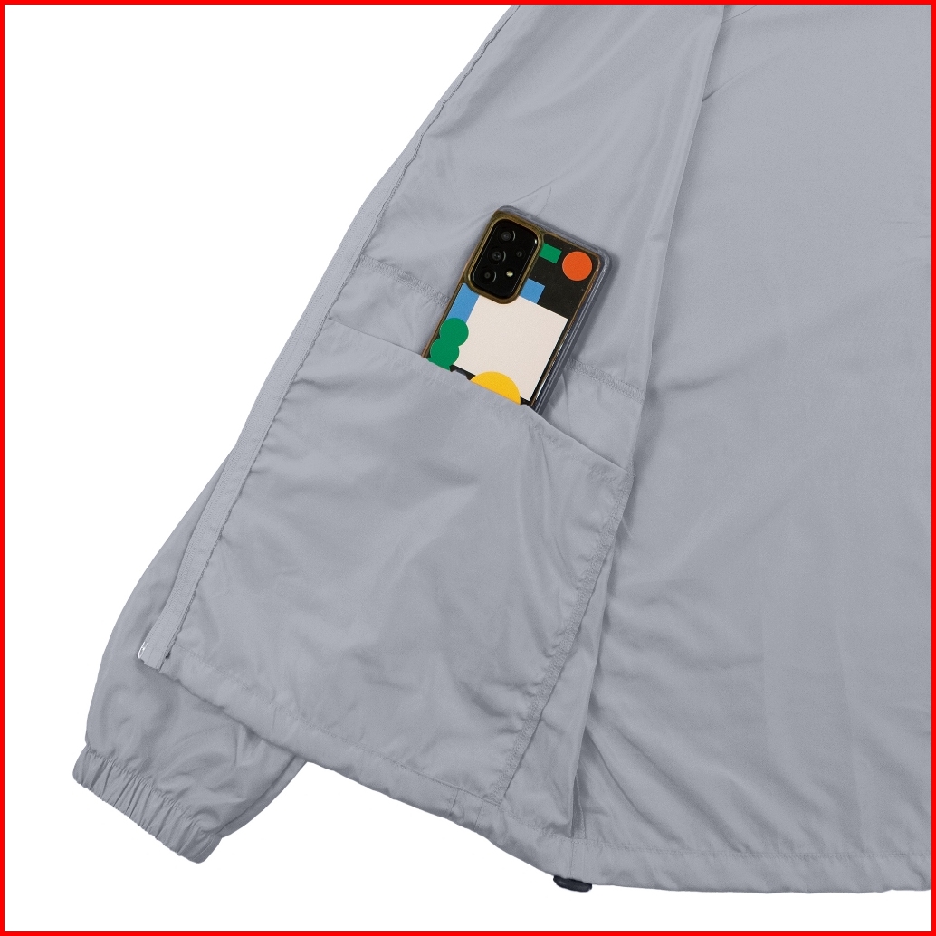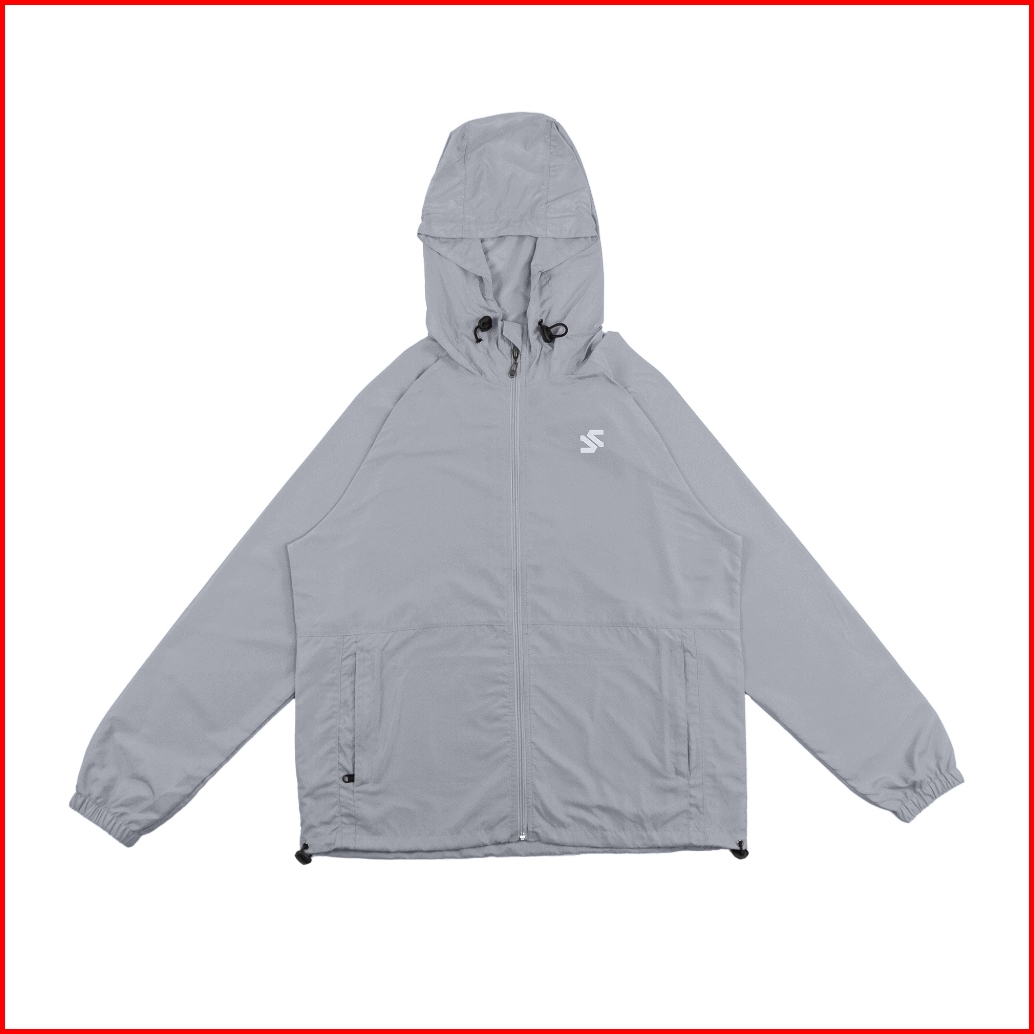 Saiber - Jaket Olahraga Running Parasut Pria Wanita Saku Dalam Uv Protection Windbreaker Warna Abu
