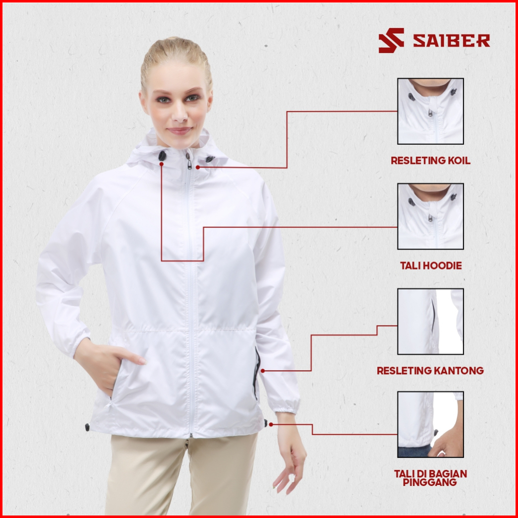 Saiber - Running Jacket Basic Windbreaker Uv Protection Foldable Quick Dry Warna Putih