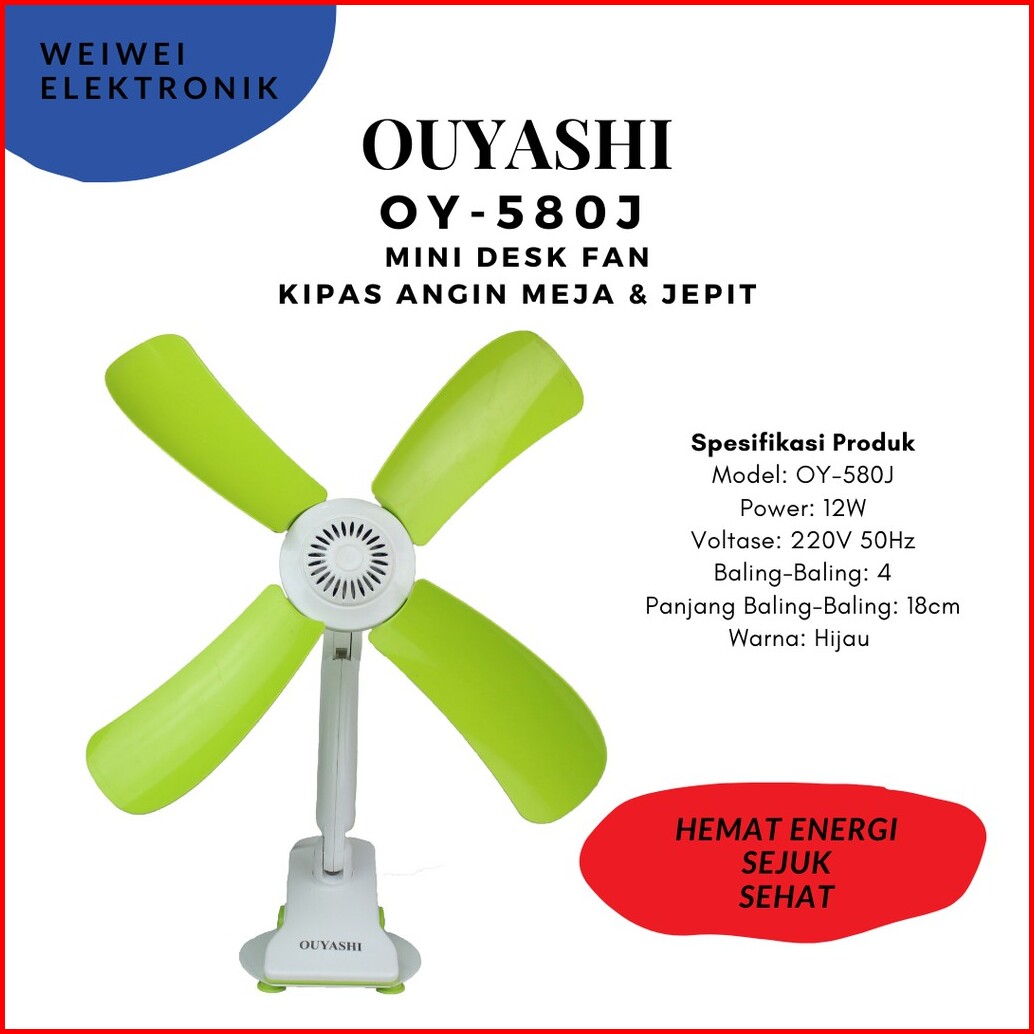 Kipas Angin Meja Dan Jepit Ouyashi Tipe Oy-580j Warna Hijau Real Pic