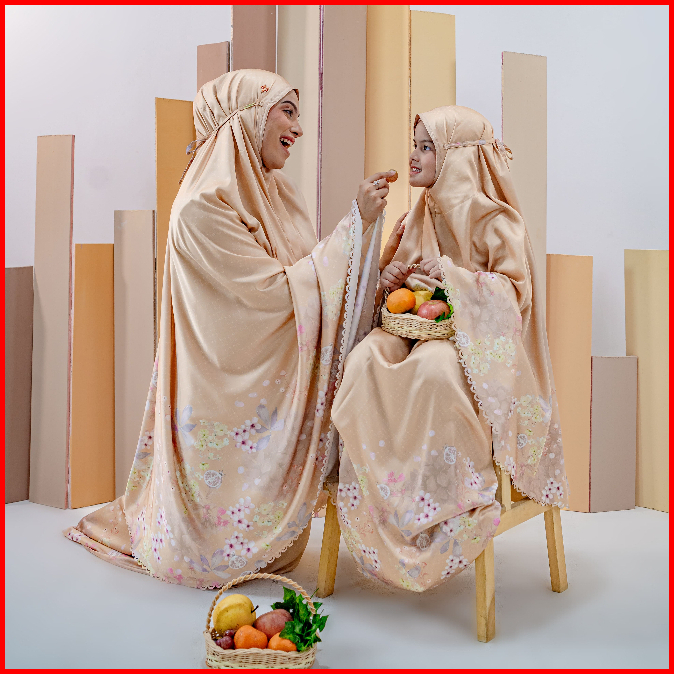 Veselka Mukena Couple Ibu Dan Anak 2in1 Turkish Pomegranate Series Set Sajadah Zipper Resleting Silky Motif Bunga