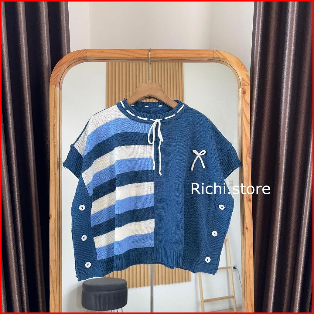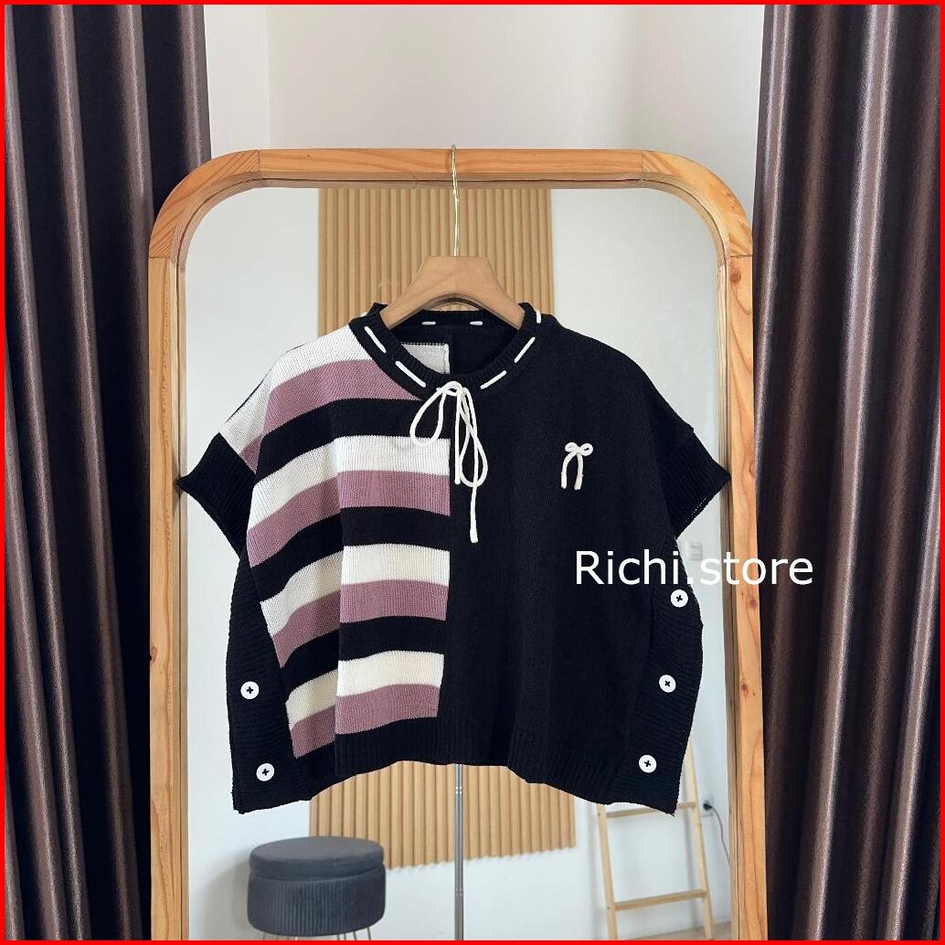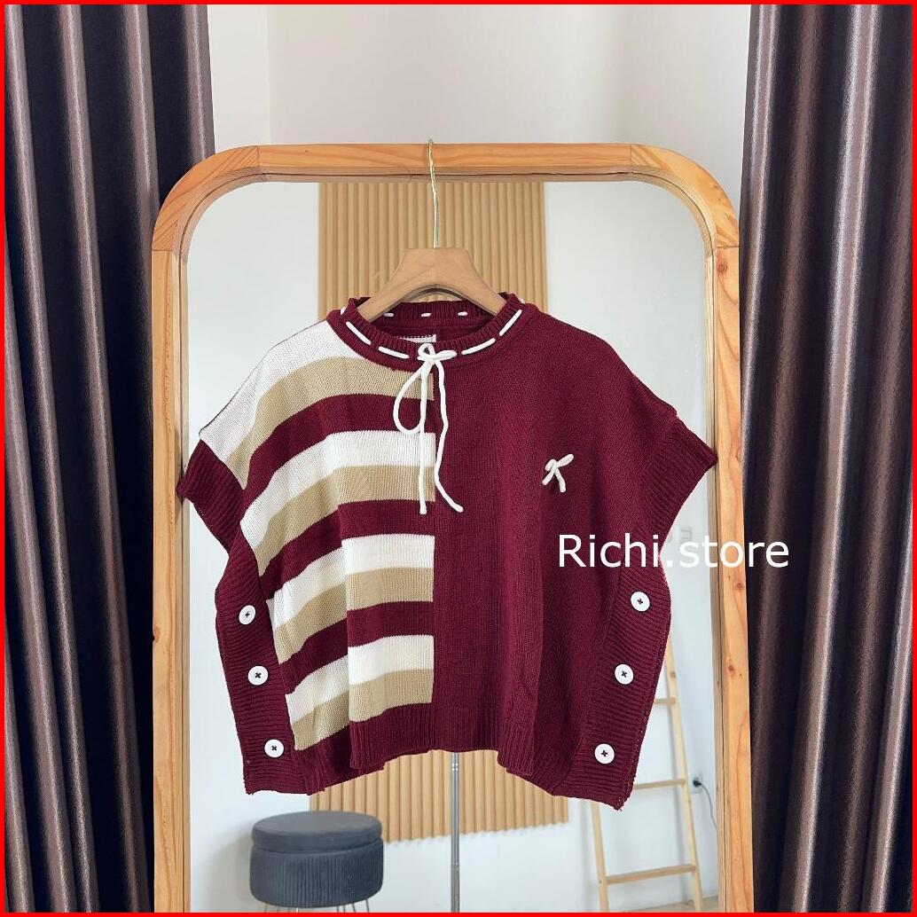 Faridha Vest Crop Salur Pita Rajut Atasan Wanita Pendek Knitwear Rompi Kancing
