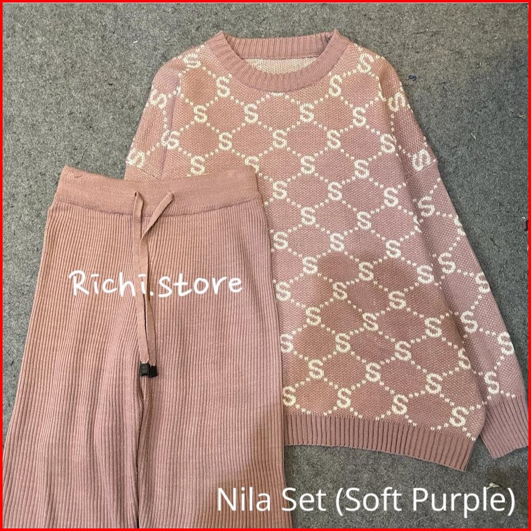 Syla Oversize Sweater - Setelan Kulot Rajut Kulot Sweater