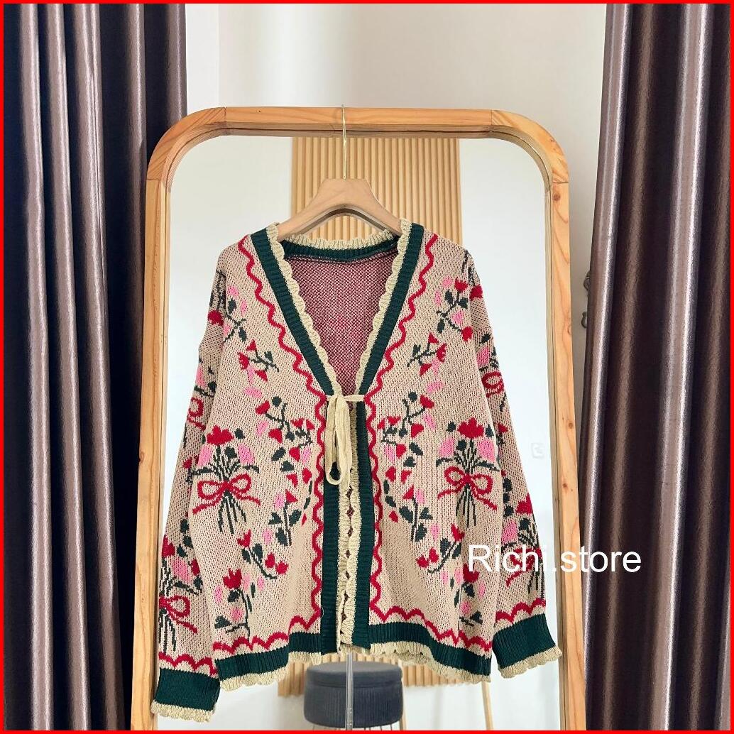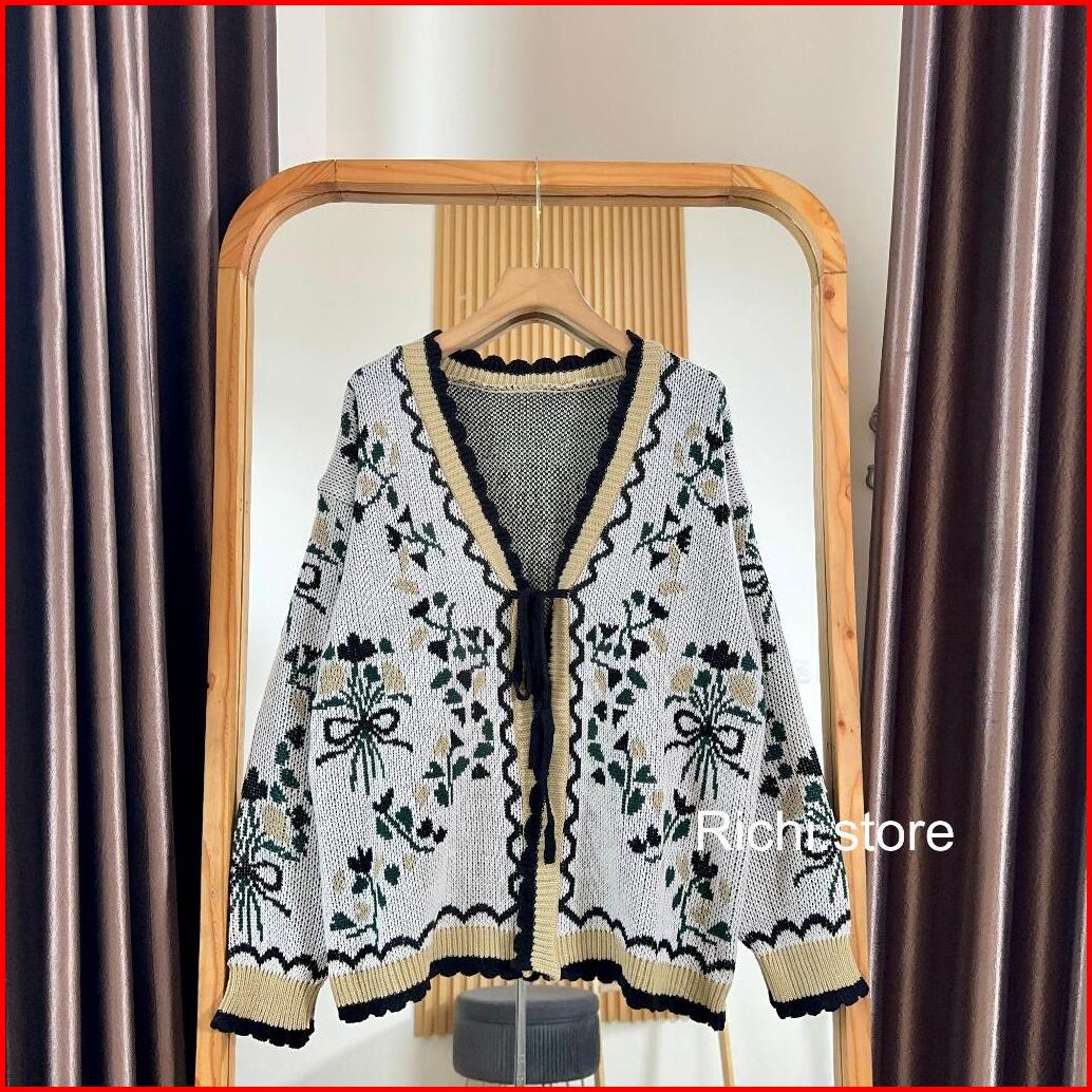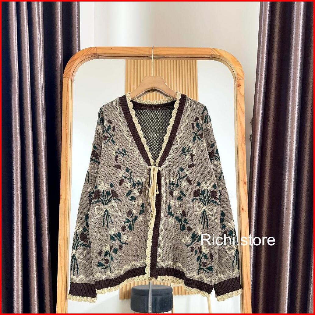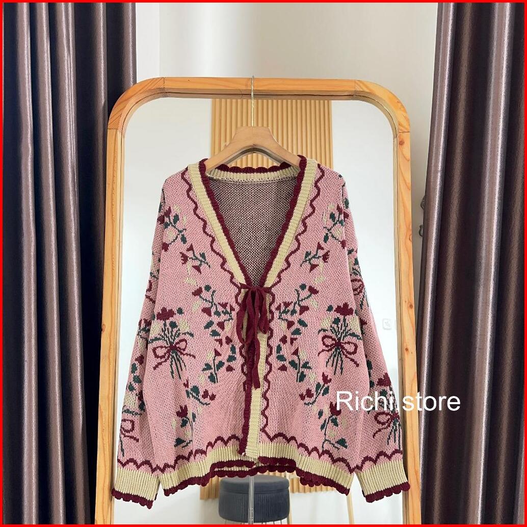 Leena Cardigan Knitwear Baju Outer Rajut Bunga Tali Pita
