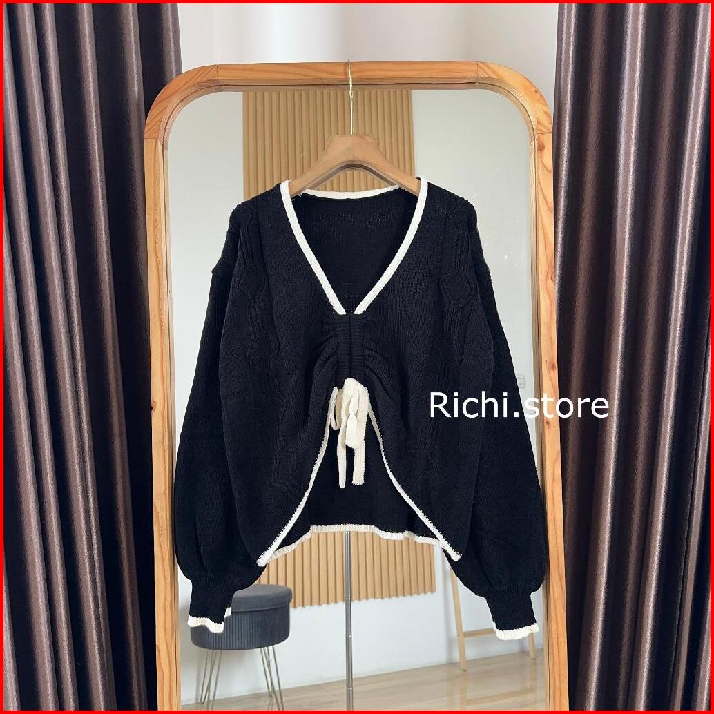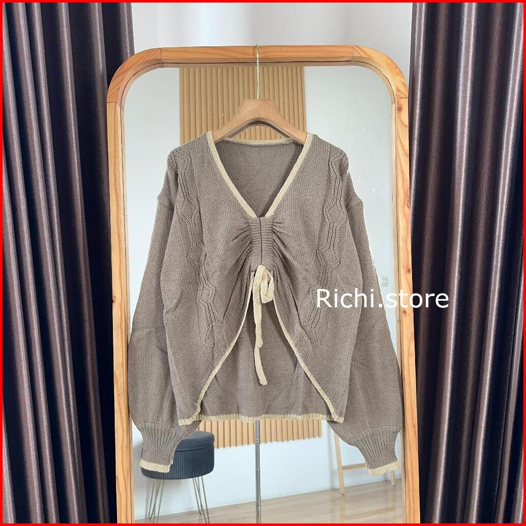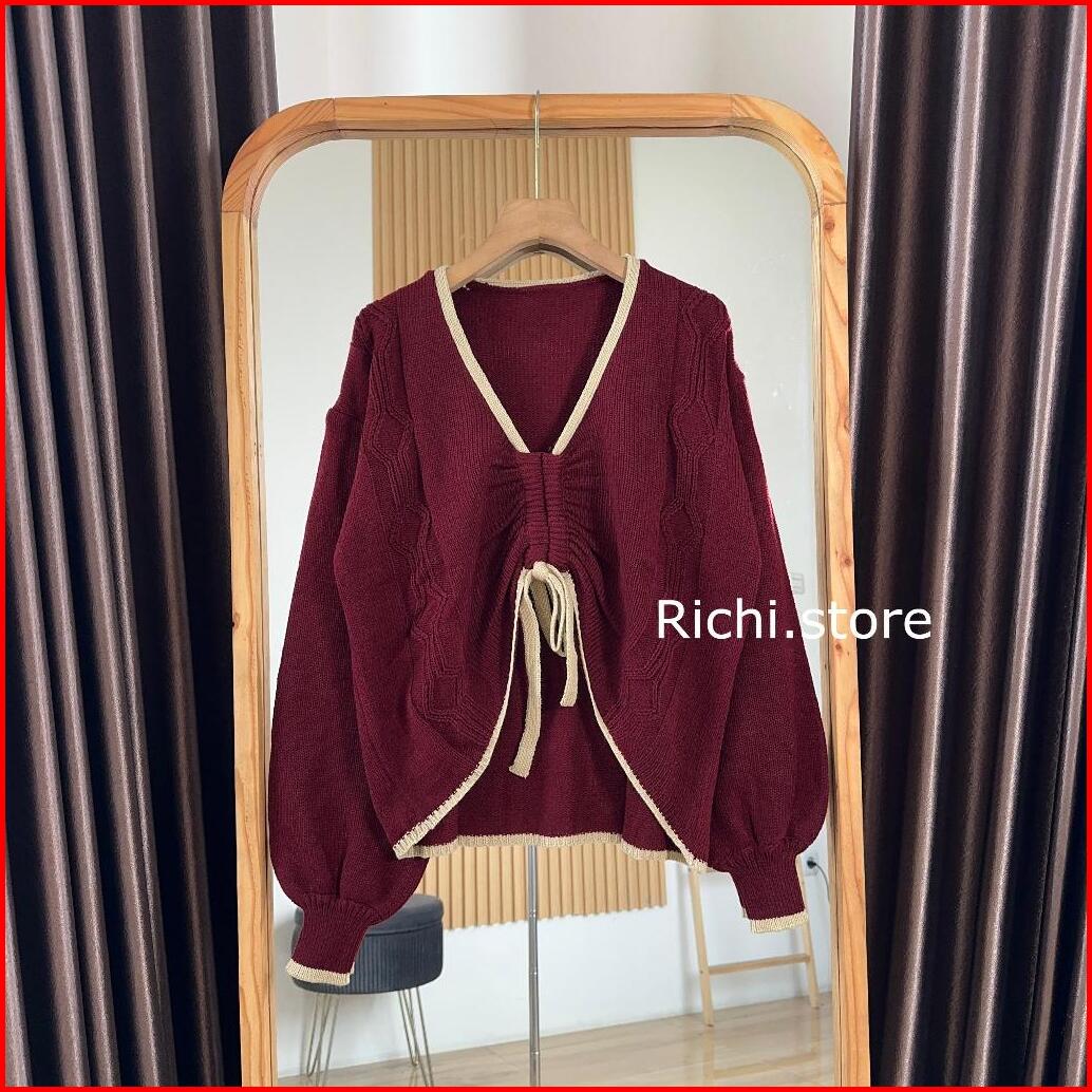 Andita Balero Rajut Baju Wanita Knitwear V-neck Lengan Balon