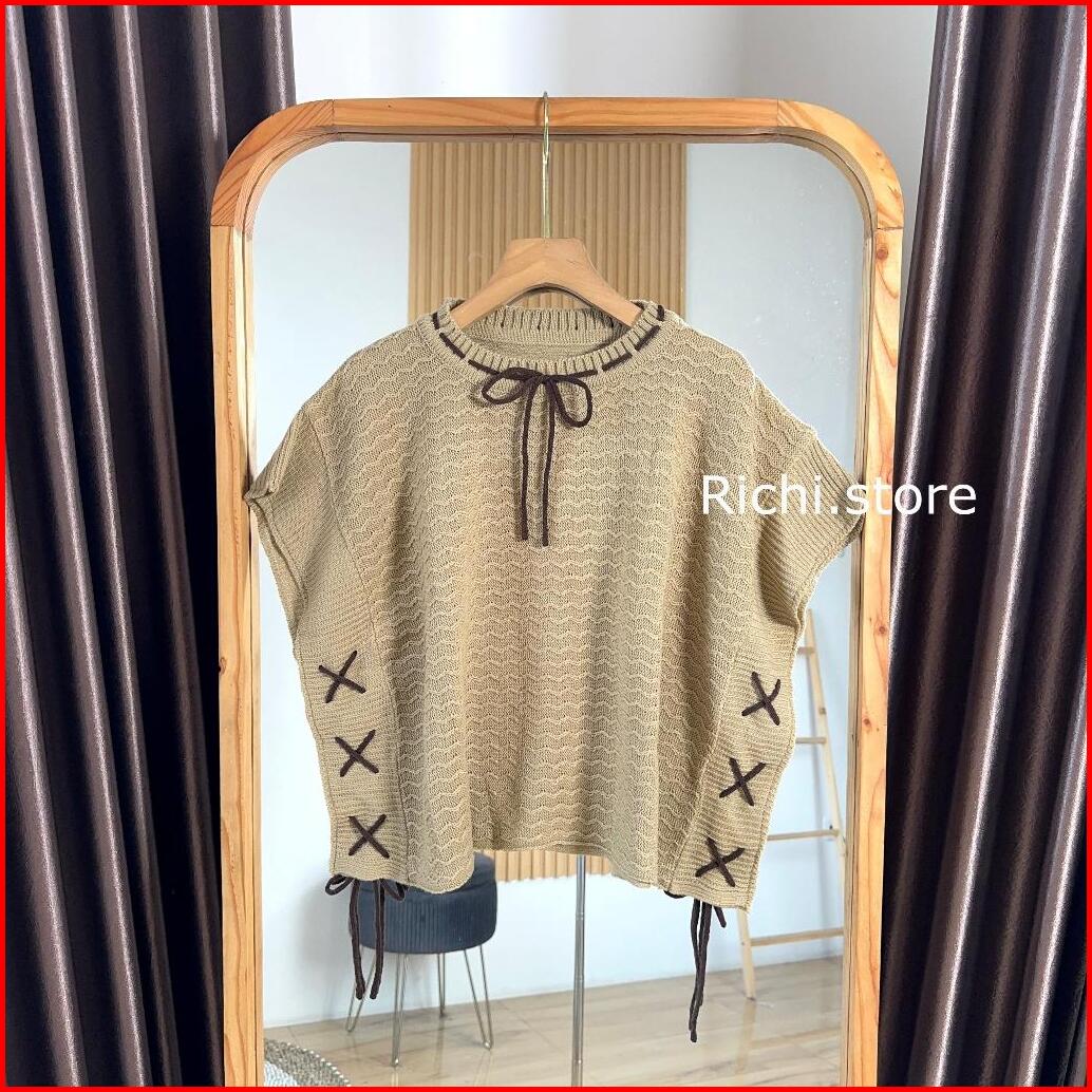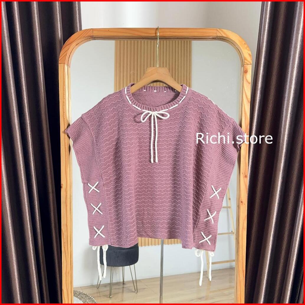 Keyla Vest Crop Rajut Atasan Wanita Pendek Knitwear Rompi Tali Serut
