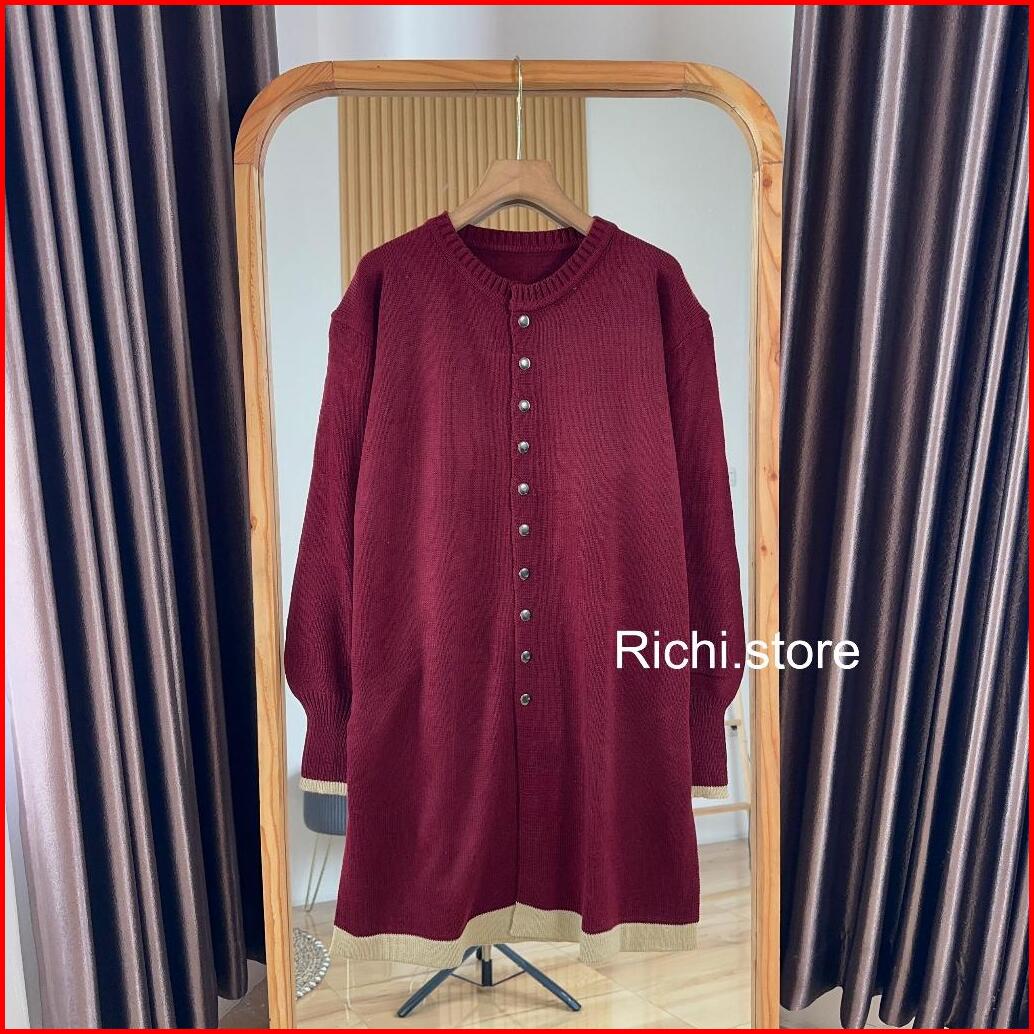 Patrice Cardigan Tunik Rajut Atasan Wanita Panjang Kniwear Kancing