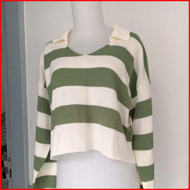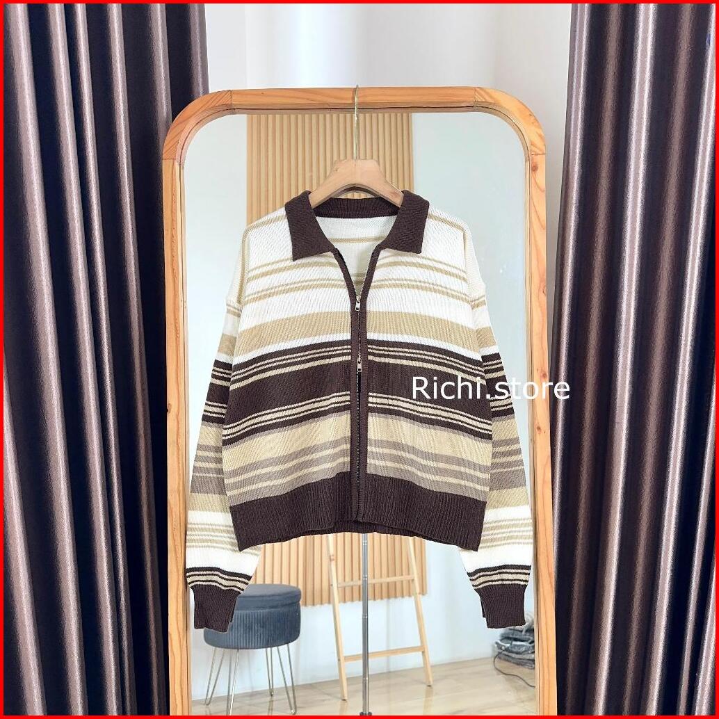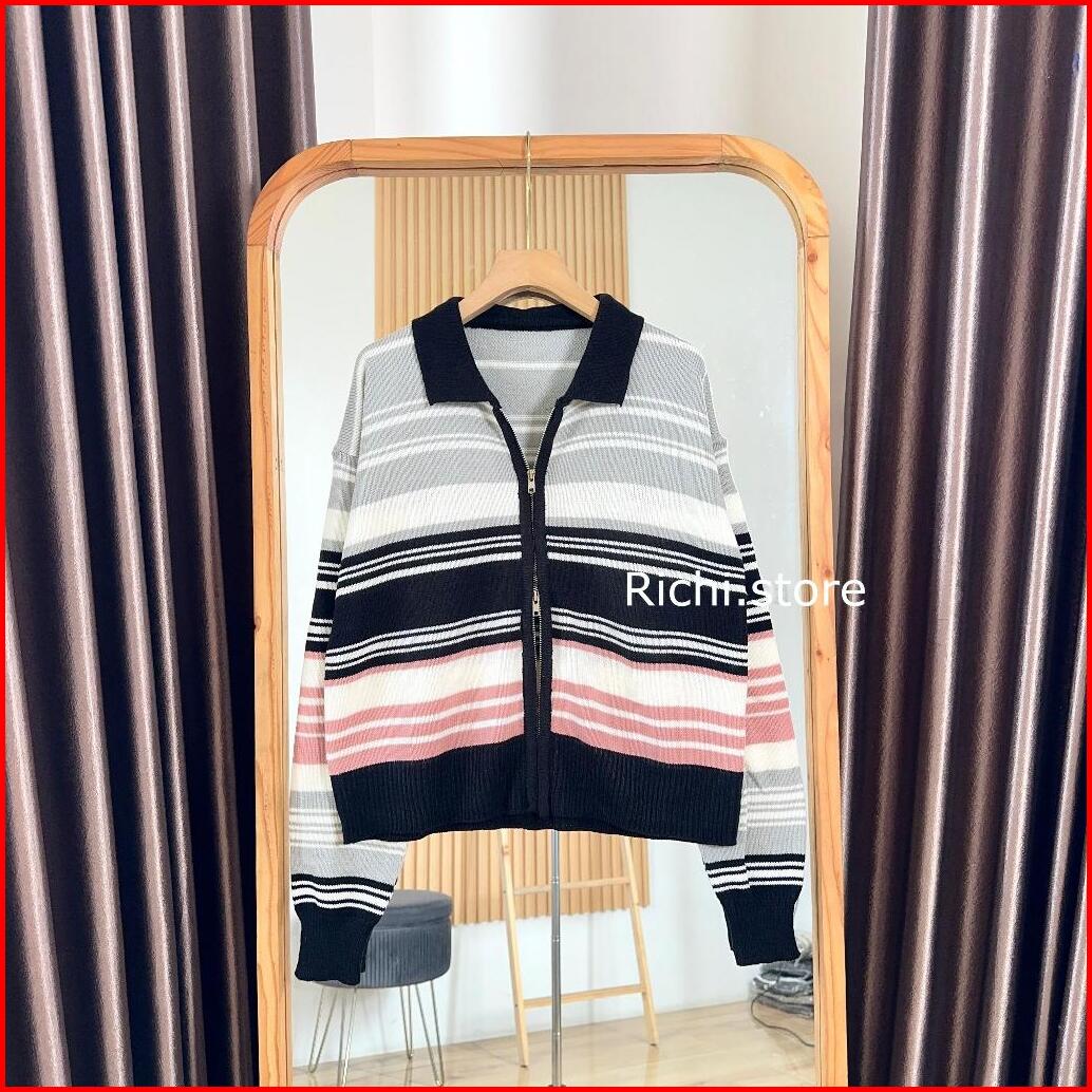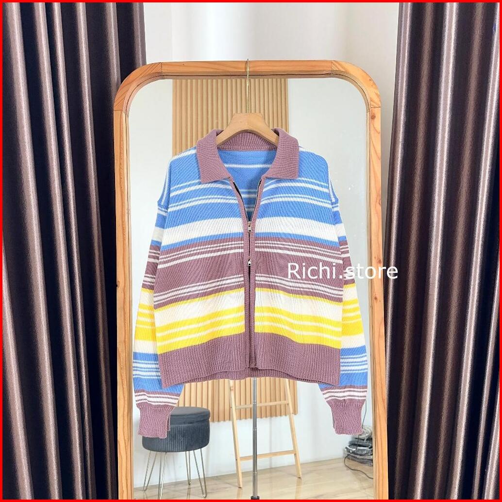 Maudy Cardigan Zipper Rajut Pelangi Baju Wanita Berkerah