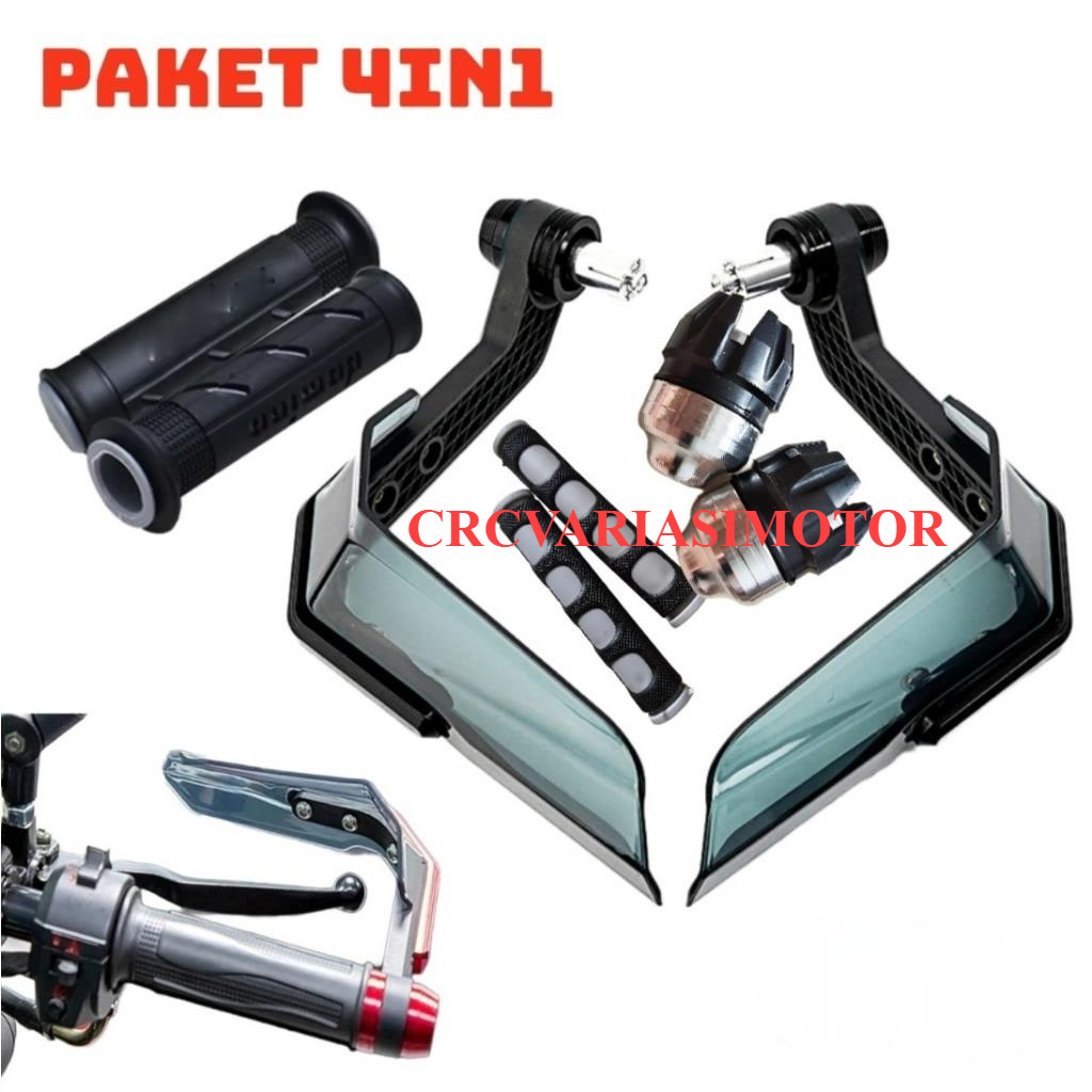 PAKET 4IN1 PROGUARD ALMINI SUPERMOTO + GRIP SISIK + KARET HANDLE + JALU AS NAGA CUSTOM HANDGUARD KLX150 CRF150 VIXION W