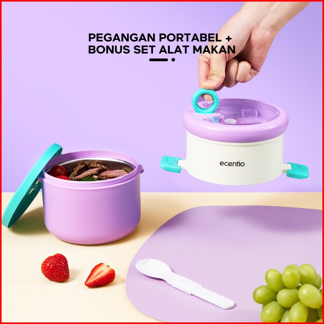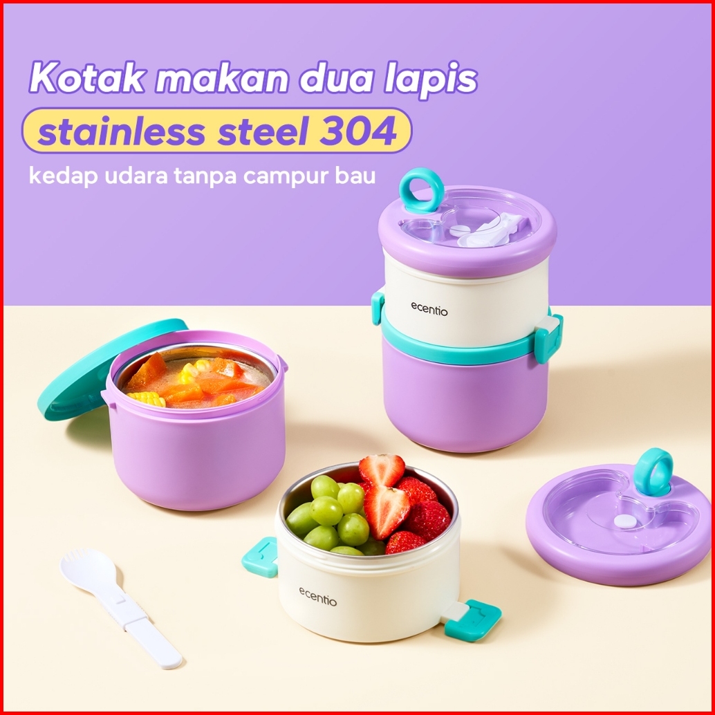 Ecentio Lunch Box Stainless 2pcs Double Layer 730 550ml Kotak Makan Siang Bento Portabel Tahan Bocor Gaya Round Stainles