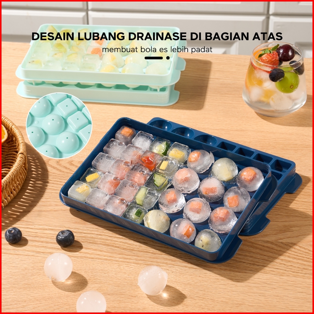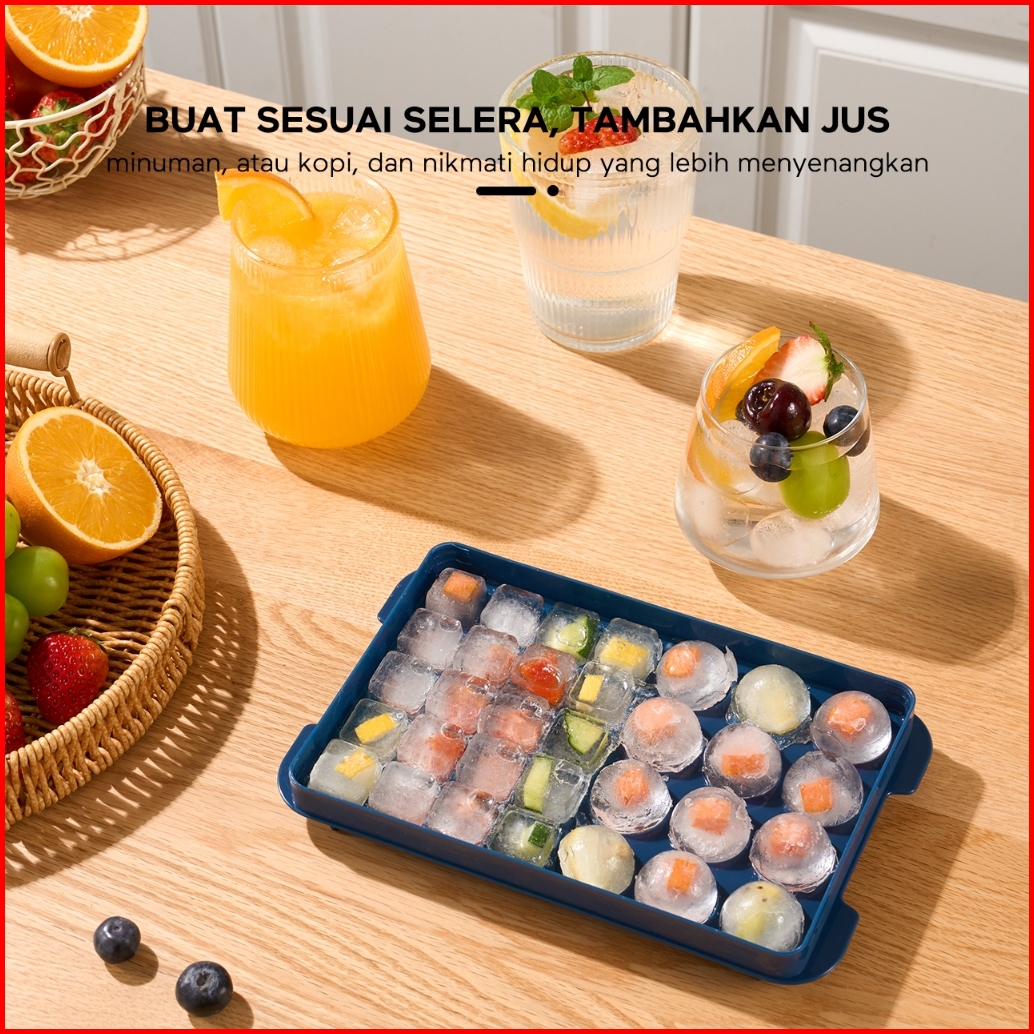 Ecentio Cetakan Es Batu Jelly Bulat 32 Grid Ice Cube Trays Alat Food Grade Ditekan Kotak Penyimpanan Es Batu Artefak Es