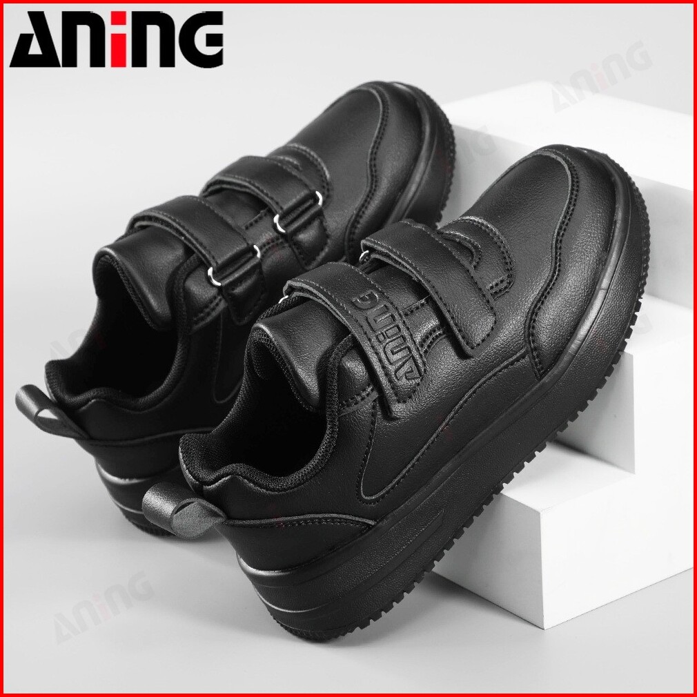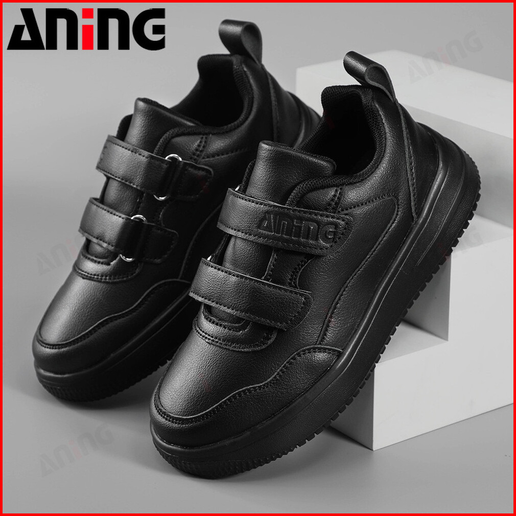 Aningboy-sepatu Anak Laki-laki Sepatu Sekolah Siswa Hitam Sepatu Olahraga Kasual Bahan Pu Kulit