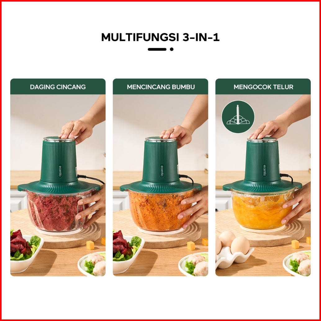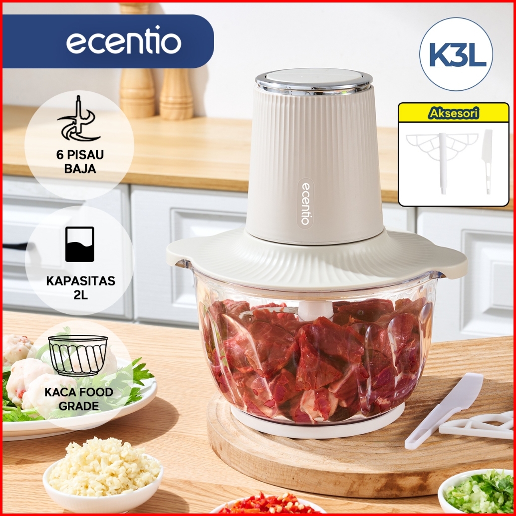 Ecentio Chopper 3 In 1 Multifungsi Food Processor 6 Mata Pisau 2l Besar 350w Dilengkapi Dengan 2 Kecepatan Daya Kuat Pen