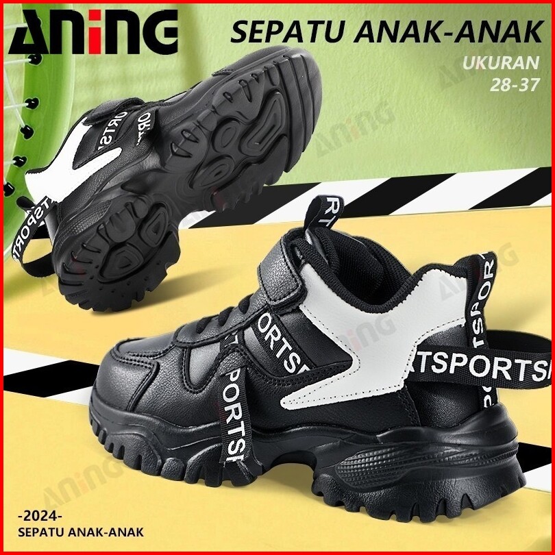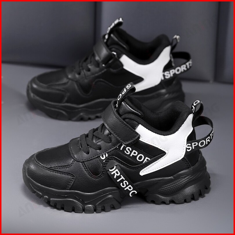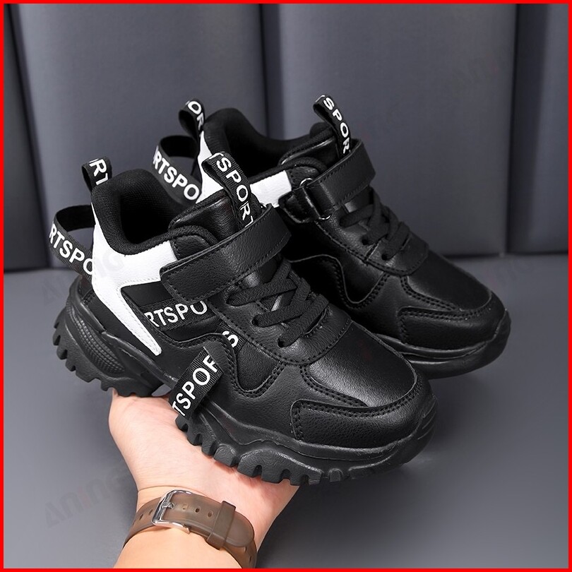 Aning Aningboy-sepatu Anak Laki-laki Pu Leather Bernapas Kasual Sepatu Olahraga Ringan Breathable 5-15 Tahun Cowok