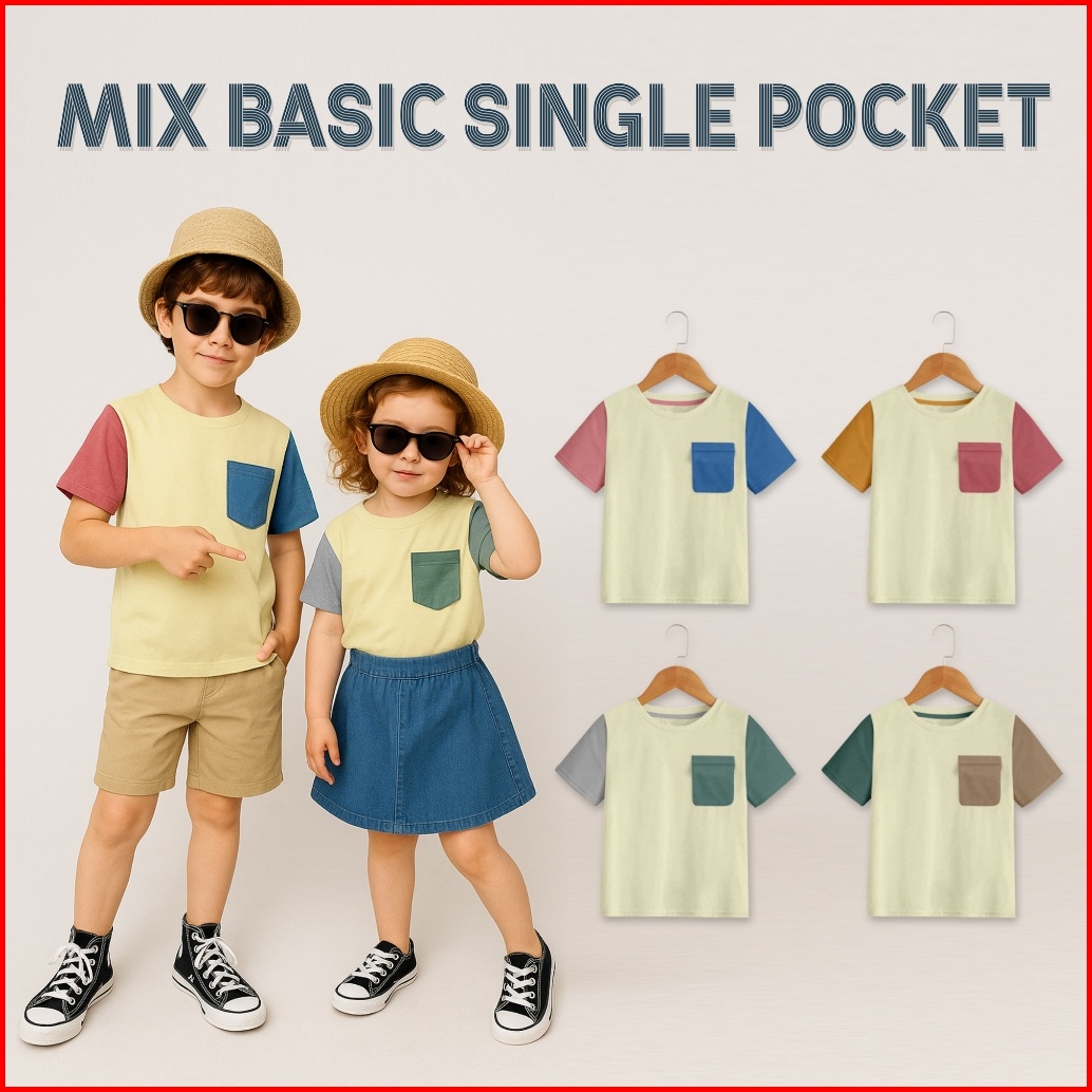 Kennai Baju Kaos Polos Anak Mix Basic Single Pocket Usia 1-5 Tahun