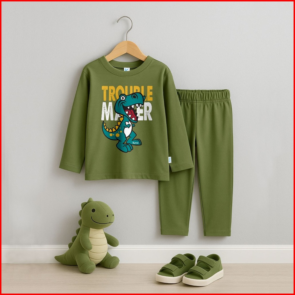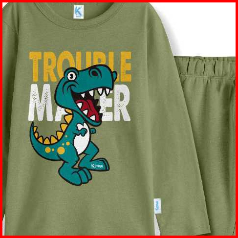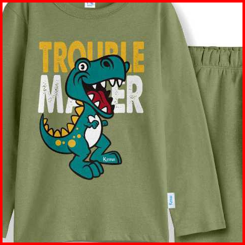Kennai Baju Piyama Lengan Panjang Setelan Laki Laki Setelan Perempuan Series Trex Trouble