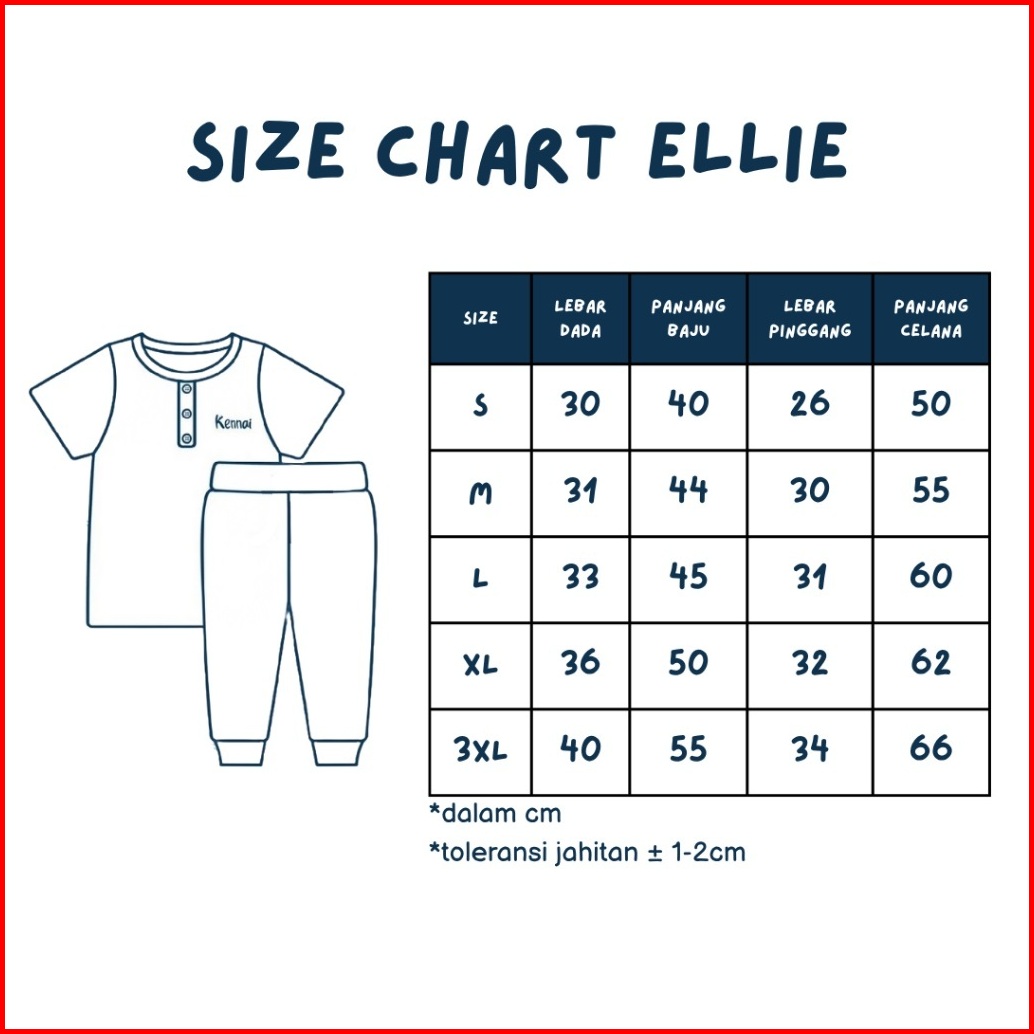 Kennai Baju Setelan Ellie Onset Anak Perempuan Laki Laki Series Dino Line Usia 1-12 Tahun