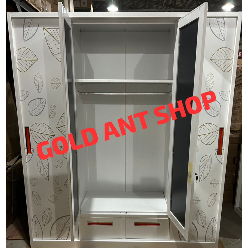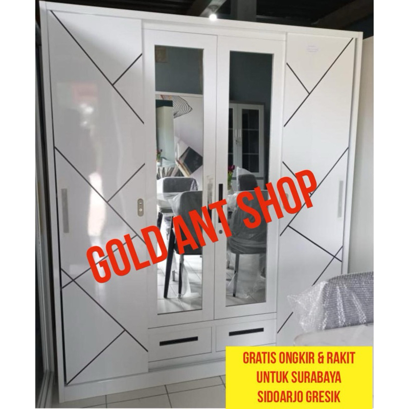 Lemari Pakaian Baju Sliding Besi Jumbo 4 Pintu 160 Kaca / Lemari Besi 4 Pintu