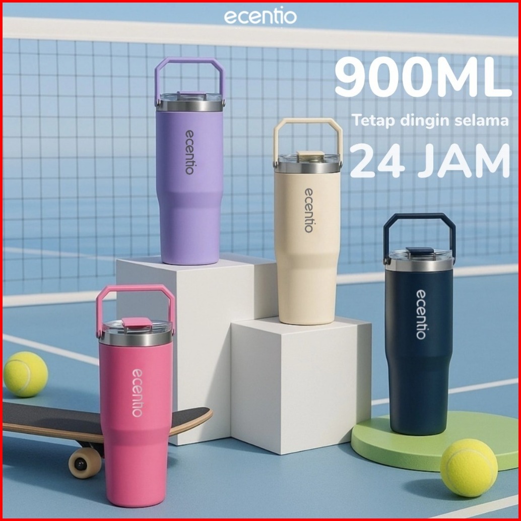 Outdoorecentio Tumbler Stainless Olahraga Vacuum 900ml Navy Briu Pink Beige Ungu Outdoor Sport Lari Portable Tetap Dingi
