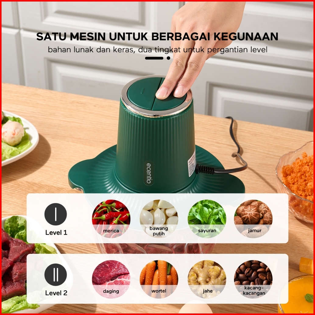 Ecentio Kaca Chopper Blender 2l 3-in-1 Multifungsi 6 Mata Pisau Food Grade Garansi 1 Tahun