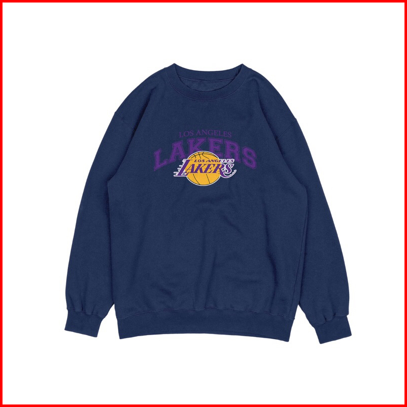 Brucash Sweater Crewneck Lakers Jumbo Big Size Pria Wanita 2xl 3xl 4xl 5xl Abu Muda