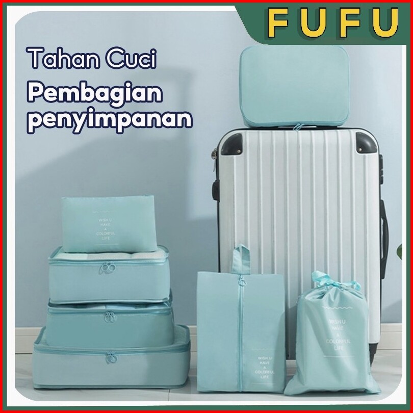 Fufu Tas Travel Organizer 7in1 Organizer Storage Bag Tas Dalam Koper Tas Koper Kantong Packing Pakaian Bahan Kain Oxford